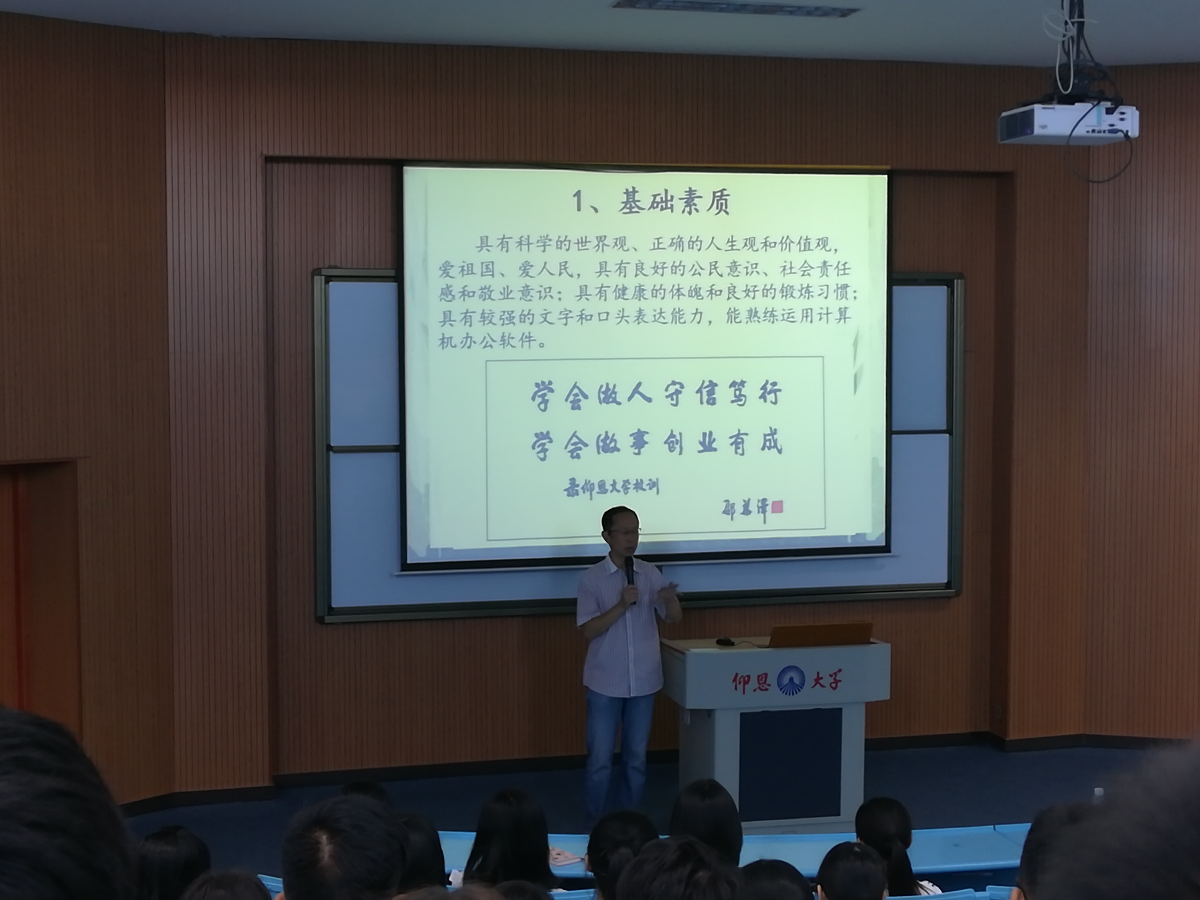 会上,我院各系主任对新生的加入表示热烈欢迎。在专业介绍上,各系主任结合各专业特色就人才培养目标、课程的设置、就业方向三大主要模块为新生们一一解答了“专业怎么样?”,“专业学什么?”,“毕业后做什么?”。同时通过对校园的硬件设施的跟进,教学条件的改善,往届优秀校友的典型事例等方面的介绍,让新生们信心满满,扬帆起航。