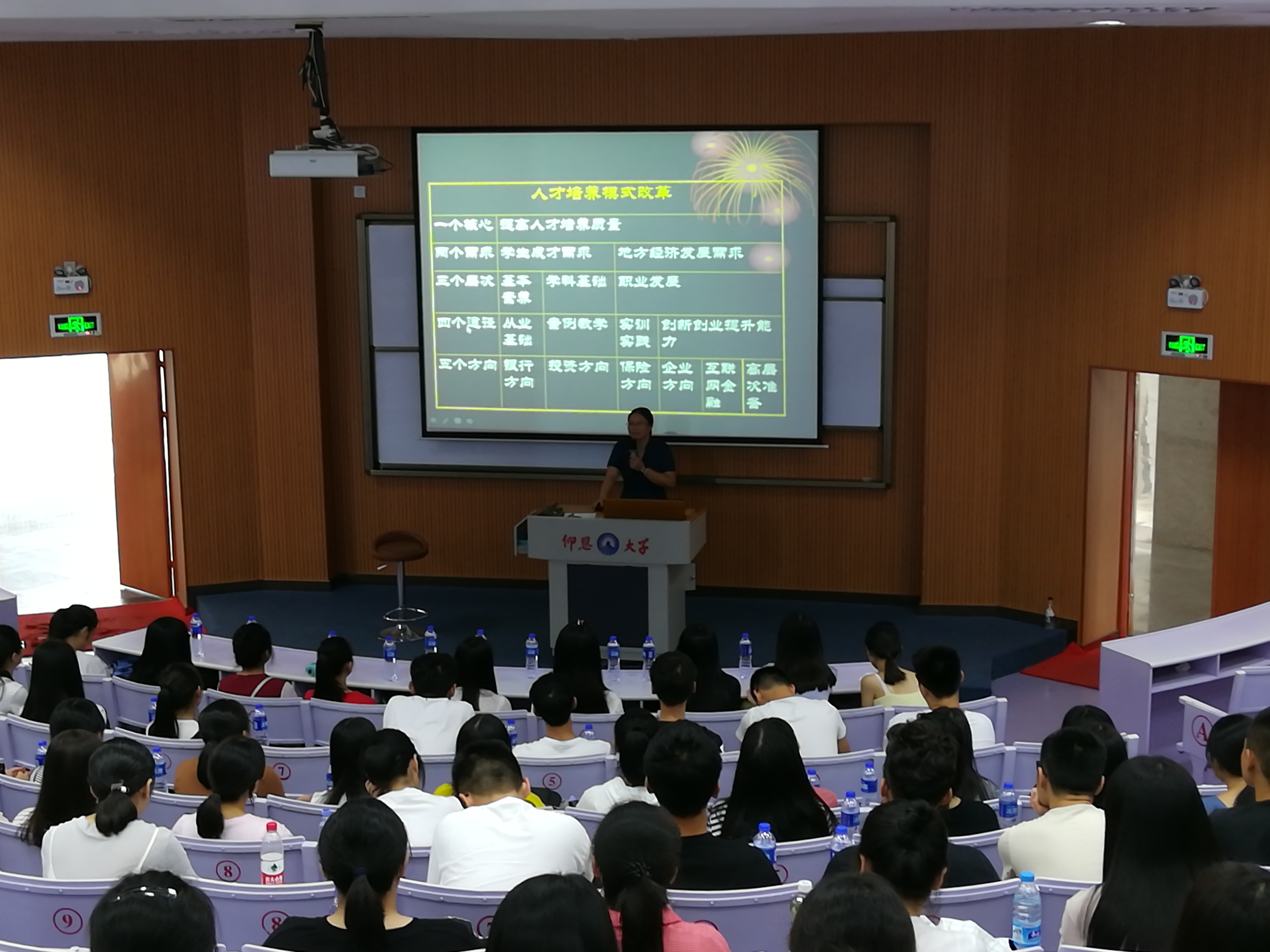 9月14日上午,我院金融学系、经贸系、经济学系分别于新区和昌博雅讲堂、思齐讲堂、海纳讲堂开展专业介绍会,会议由各系主任主讲。院长张雪梅、党总支兼副院长吴晓伟、副院长陆泽波、金融学系主任黄淑兰、经贸系主任吴慧明、经济学系主任王建军出席。