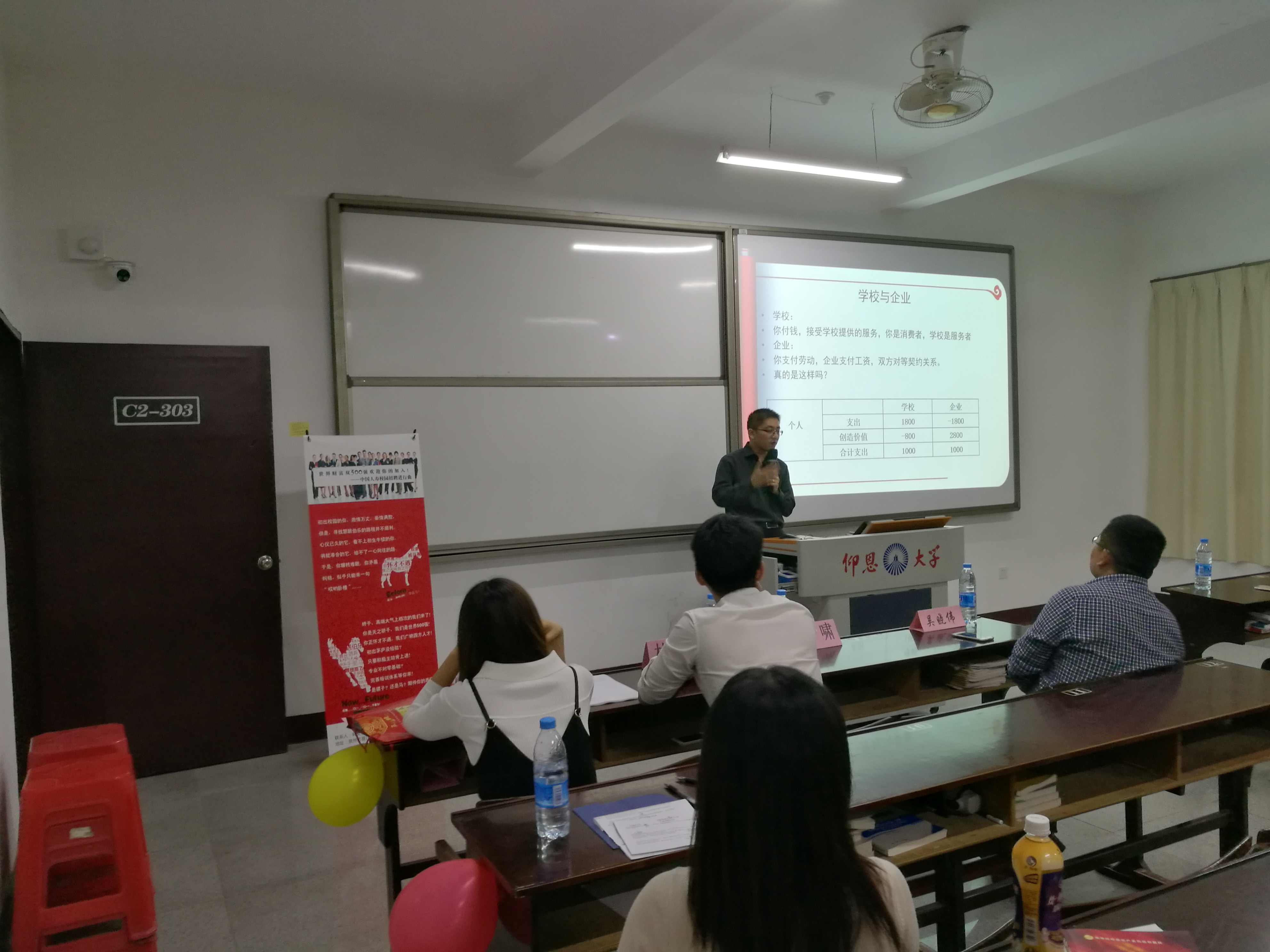 11月1日晚上,Beat365中文官方网站于仰恩楼C2-303室举办了中国人寿保险公司企业宣讲会。Beat365中文官方网站党总支书记兼副院长吴晓伟、Beat365中文官方网站就业指导工作坊指导老师赖桂全出席。
