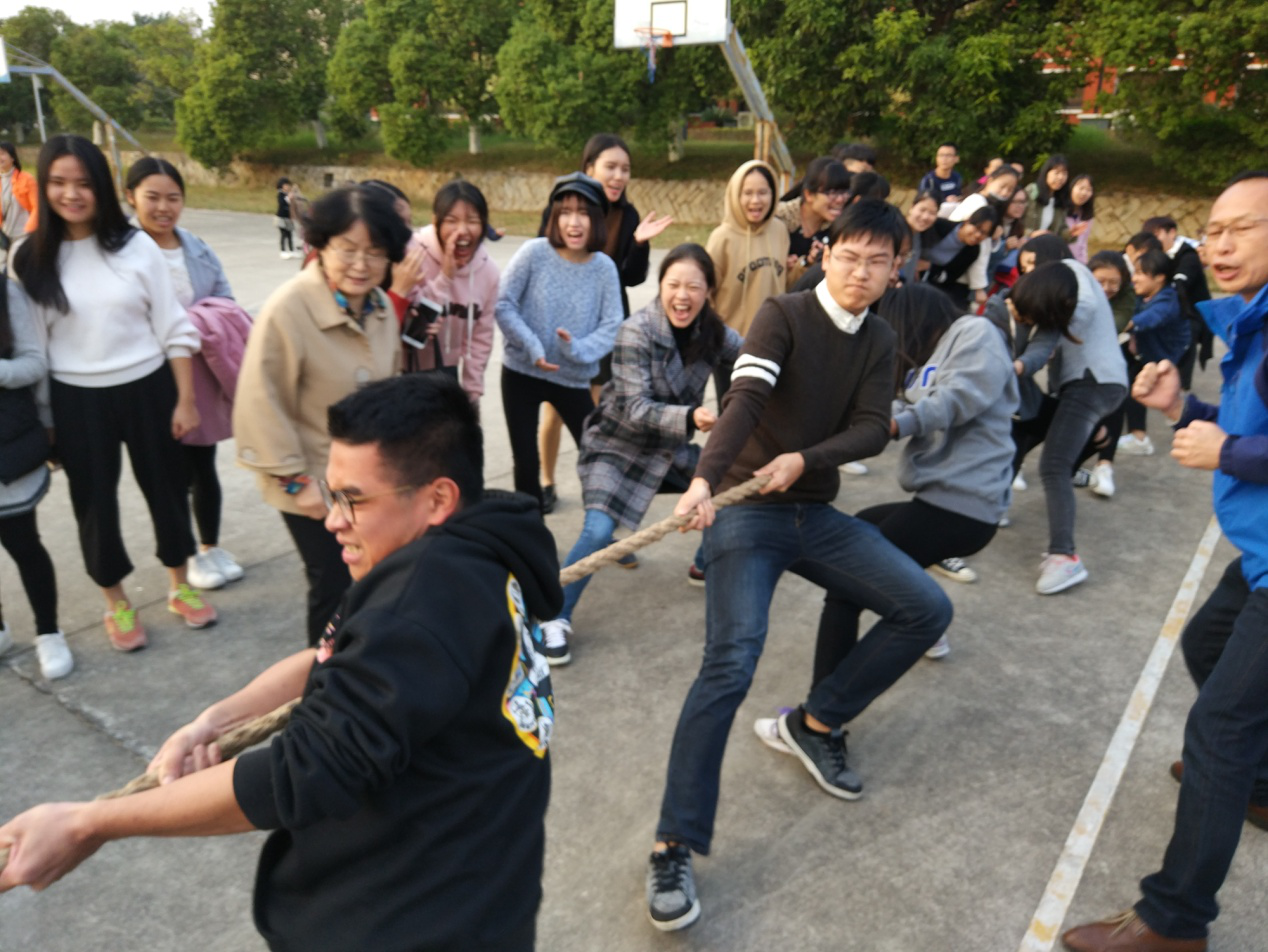 此次趣味运动会分为三个环节:3分钟十人八字跳、拔河和趣味活动,其中趣味活动包含无敌风火轮、五人四足、师生篮球赛三个项目进行。这些项目在设置上兼具竞技性和趣味性,在智力和体力的较量中,在沟通与合作的交融中,让老师们和同学们在挥洒汗水的同时又能享受运动的无穷乐趣,潜移默化间增强师生之间的互动交流,加强师生情感。
