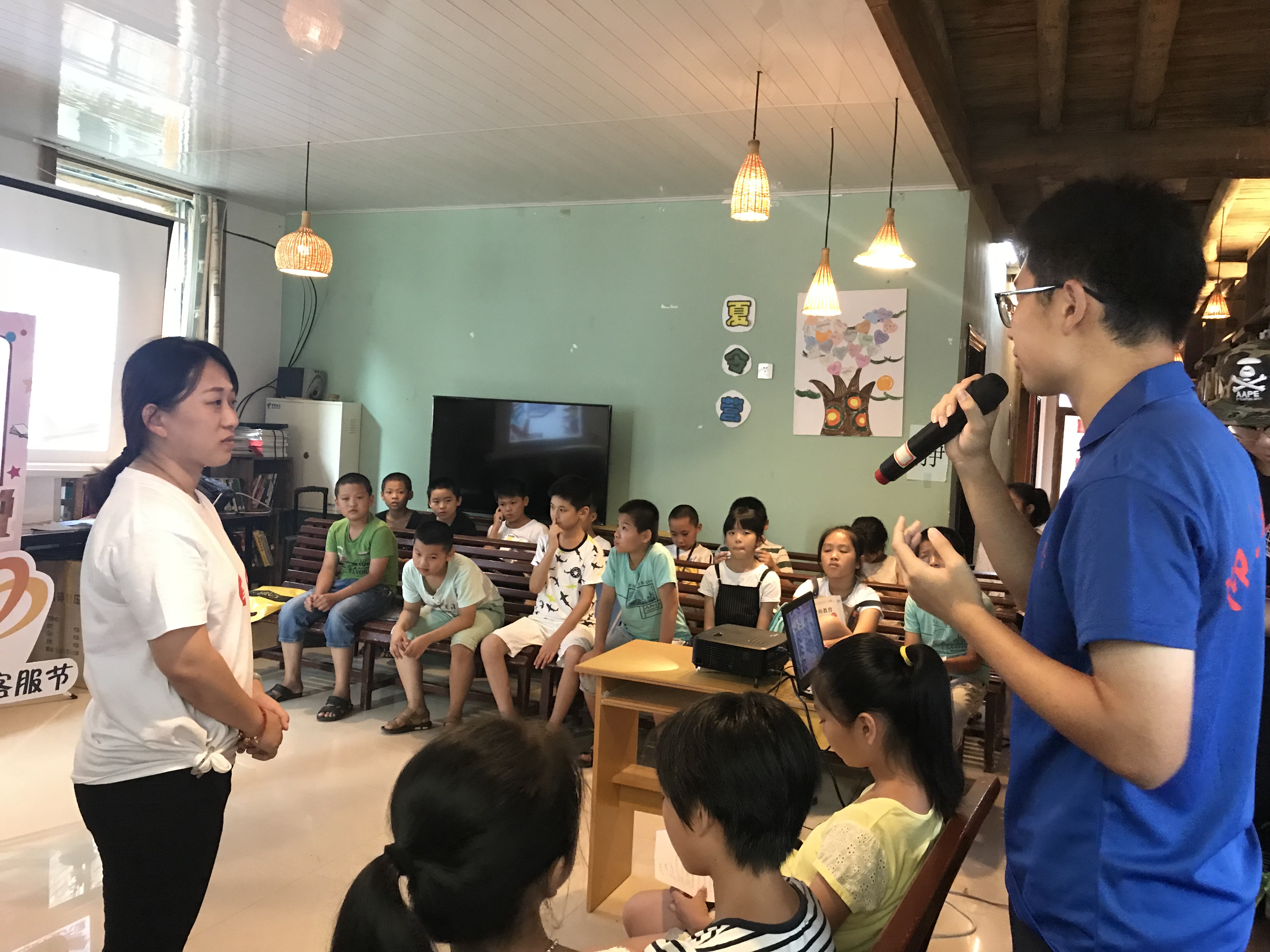 7月18日,Beat365中文官方网站赴永泰嵩口飞虎实践队于嵩口古镇社区公益图书馆协同中国平安保险志愿者举行“少年图书说”活动。