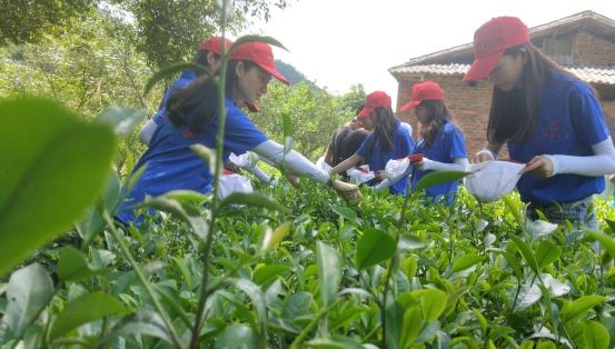在当地茶农的积极帮助下,实践队员们采用分组形式采摘茶叶,以“两叶一芯”的口诀顺利完成采摘任务,充分体会到茶农日常工作的繁琐复杂及用心良苦。
