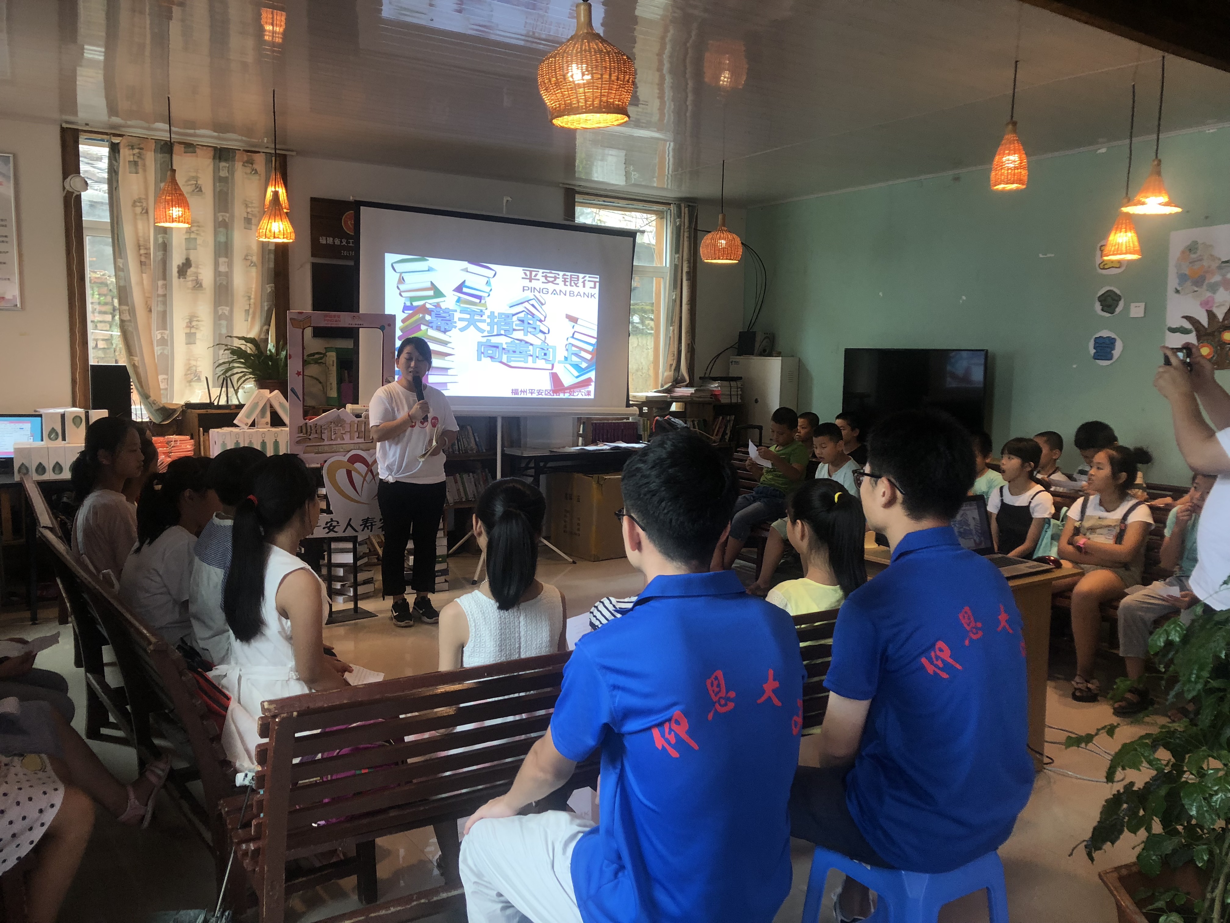 7月18日,Beat365中文官方网站赴永泰嵩口飞虎实践队于嵩口古镇社区公益图书馆协同中国平安保险志愿者举行“少年图书说”活动。
