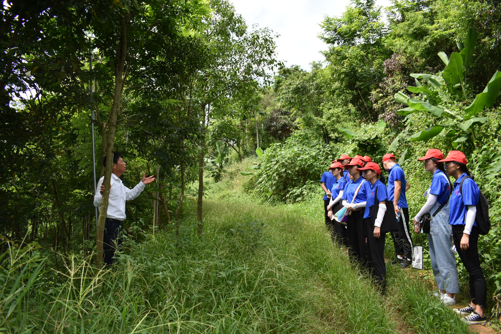 实践队还对场内的珍贵树种基地进行了调研。在调研中,实践队了解到基地里主要以檀香木和花梨木为主,其中檀香木在6-7年时能够进行“钻孔结香”提取香料;生长20多年的树木能够做为高端家具的原材料。