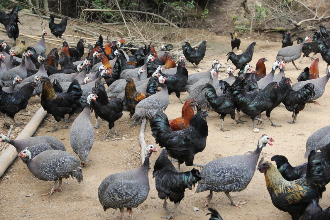 为贯彻落实党和政府的“乡村振兴”战略精神,实践队一行人来到中赤村山峰下调研贫困户余明茂的农场。据悉,余明茂去年才返乡创业,目前在村里承包流转土地,大规模养殖家禽,其中包括著名的五黑鸡和珍珠鸡。落实十九大精神,以“乡村振兴”、“资源共享”为契机,贫困户余明茂与当地农户合作,成立养殖合作社,实现资源共享。余明茂作为青年创业者,看准当今的市场趋势,带动农户养殖、实现共同致富,并在下一步实现供给链,保证“养有所销,需有所供”的供销模式、提高村民收入。为乡村振兴战略贡献自己的一份力量,为促进“乡村振兴”全面发展,提高农村经济收入做出积极的贡献。