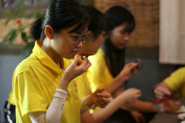 (图为实践队员在闻香)