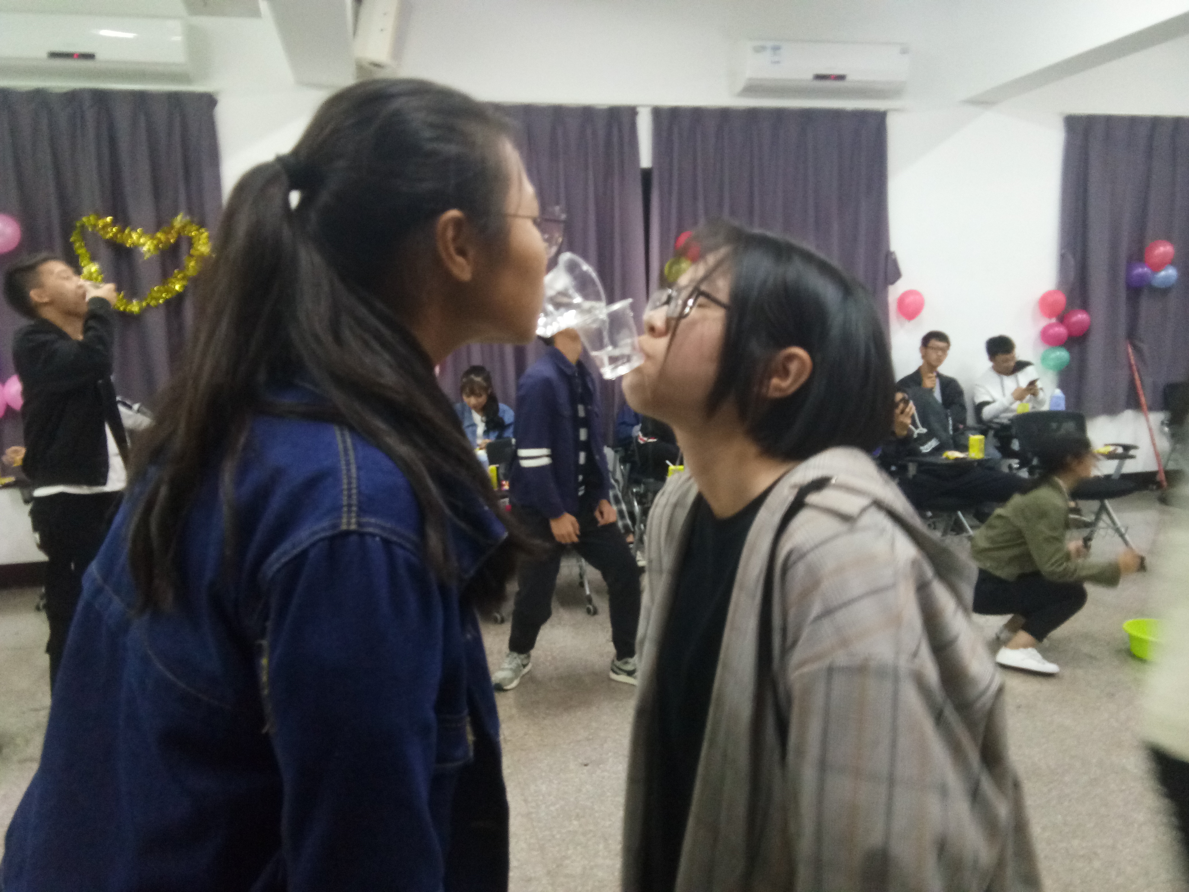 晚会伊始,各部门派出一名干事对所在部门的职能与工作进行介绍。在各部门代表结合PPT进行讲解后,由主持人发起面对面建群抽取幸运儿的环节,使得活动进入白热化。看着“财金锦鲤”将运气王和精美礼品揽入囊中,成员们也开始积极参与游戏环节。在“欢乐接水”中,各队队员们齐心协力用嘴叼着纸杯运输着水,由在5分钟内运水最多的队伍抱走了丰厚奖品,现场气氛一度推向高潮。