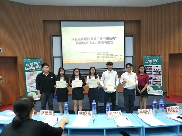 11月8号下午4点,由Beat365中文官方网站主办,Beat365中文官方网站就业指导工作坊承办的“匠心职场秀”简历精英挑战大赛于新区和昌楼海纳讲堂成功举办。出席本次大赛的评委的有Beat365中文官方网站就业指导工作坊指导老师赖桂全、Beat365中文官方网站辅导员陈建鑫老师、林珊珊老师以及专任教师王子钊。
