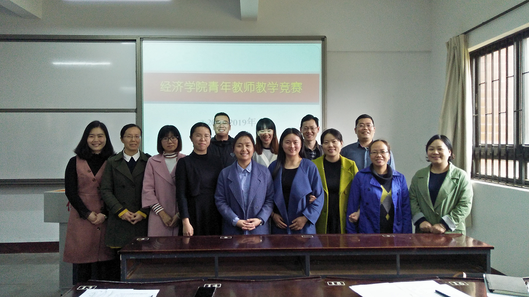 图1.我院参赛青年教师合影 根据要求,我院符合竞赛条件的13名青年教师全员参加了此次角逐。竞赛评委由校教学督导组部分老师、学院教学督导组成员组成。学校教务部郑秋莲副主任作为特邀嘉宾,拨冗莅临指导,全程观摩了此次青年教师教学竞赛。