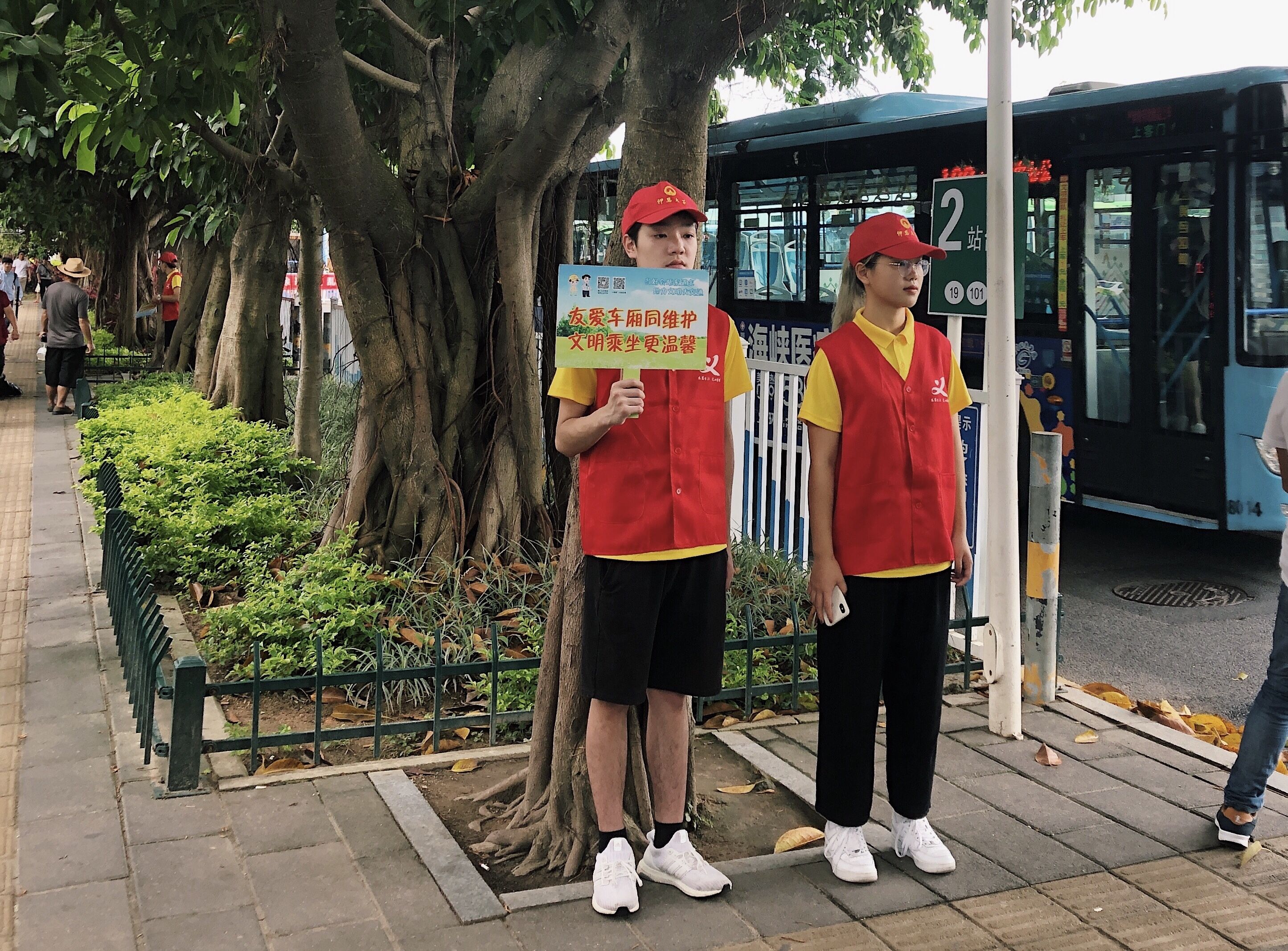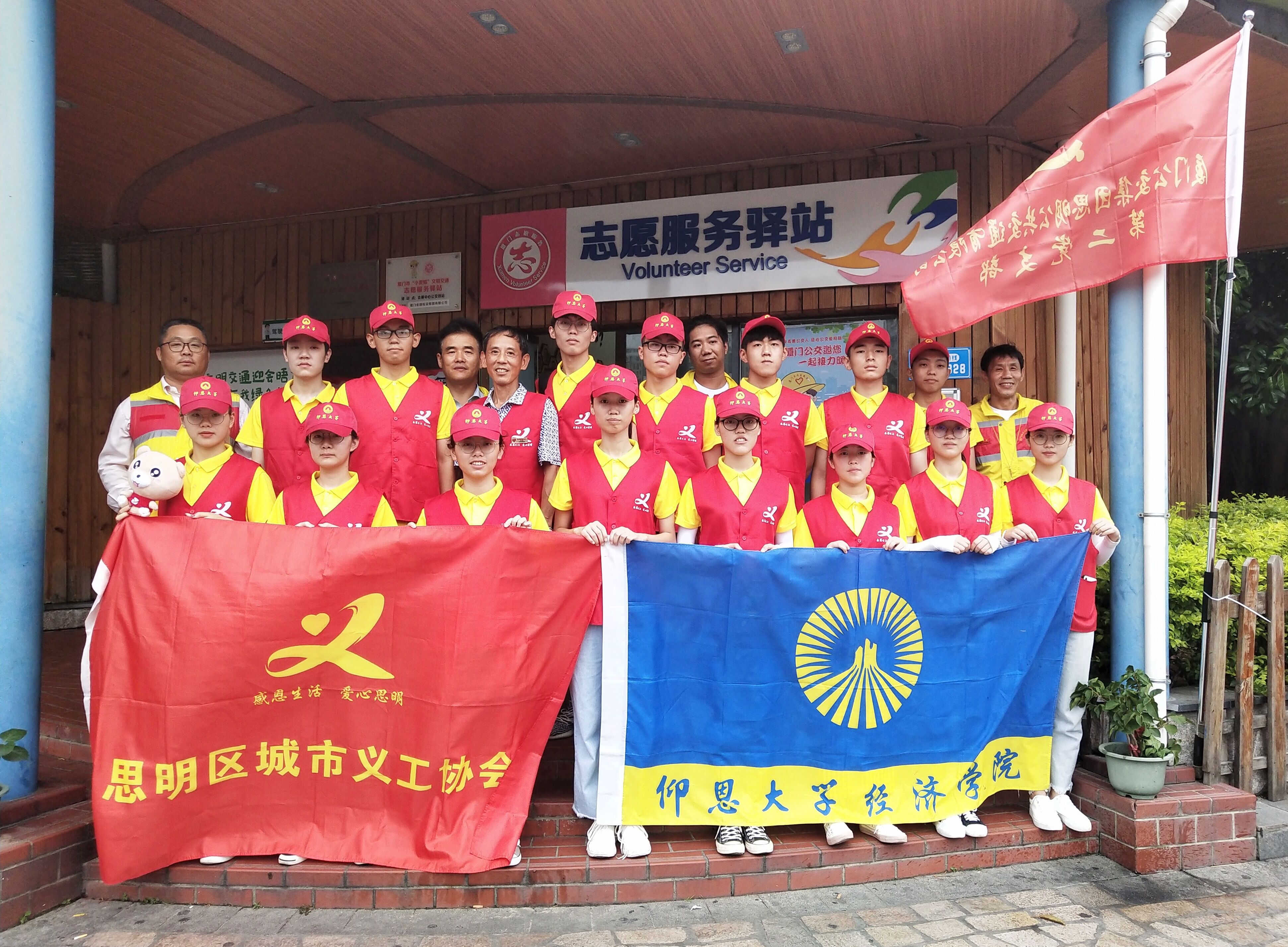 (图为厦门市会展中心公交站志愿服务驿站合照)