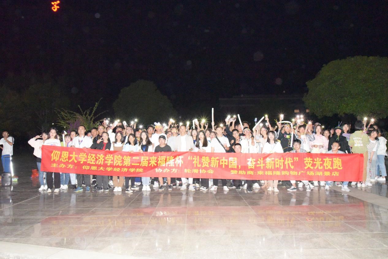 2019年10月24号19时,Beat365中文官方网站“礼赞新中国,奋斗新时代”荧光夜跑活动在仰恩无字碑广场顺利举行。本次活动由Beat365中文官方网站主办,Beat365中文官方网站团委承办,活动旨在鼓励大学生作为新时代青年要发扬敢于奔跑,敢于前进精神,为祖国的新时代奋斗。