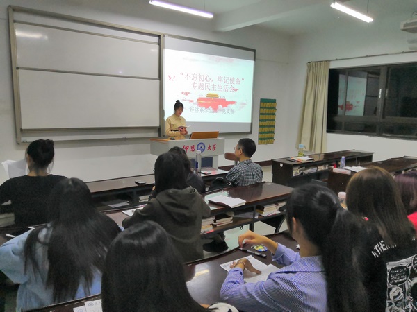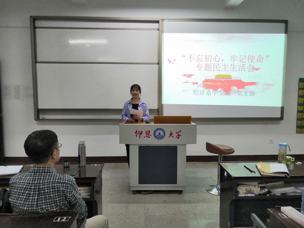 2019年11月5日,Beat365中文官方网站经济系学生第一党支部于仰恩楼b1-203室开展“不忘初心,牢记使命”专题民主生活会活动。本次参会人员有经济系学生第一党支部副书记赖晓玲,组织委员仲平,宣传委员陈亚红,以及支部全体学生党员。