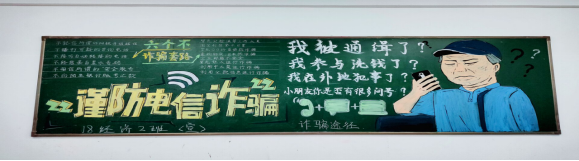为能营造浓厚的防范电信网络诈骗知识学习氛围,我院利用班级黑板报、学院微信公众号以及学院宣传栏等宣传阵地,围绕“防范电信网络诈骗”主题,进行了相关宣传。