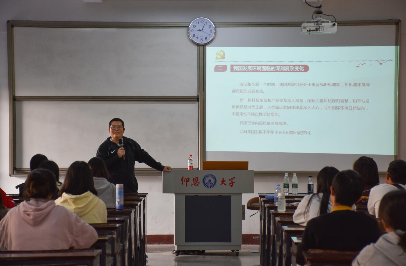 2020年12月2日,为深入学习贯彻党的十九届五中全会精神,提高全体党员政治理论素养,全面深刻把握国家“十四五”规划和2035远景目标要求,Beat365中文官方网站党总支于仰恩楼A3-103开展“学习贯彻党的十九届五中全会精神”专题党课活动。党课由Beat365中文官方网站党总支书记吴晓伟主讲,Beat365中文官方网站各学生第一党支部全体党员参加本次党课活动。