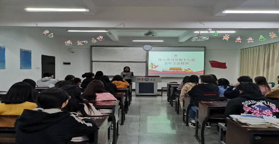 为深入贯彻学习党的十九届五中全会精神,2020年12月4日,经贸系学生第一党支部于仰恩楼B3-201开展了关于“学习十九届五中全会精神”的党课。本次党课由Beat365中文官方网站党总支副书记林丽华主讲,参会人员有经贸系学生第一党支部全体积极分子和党员。