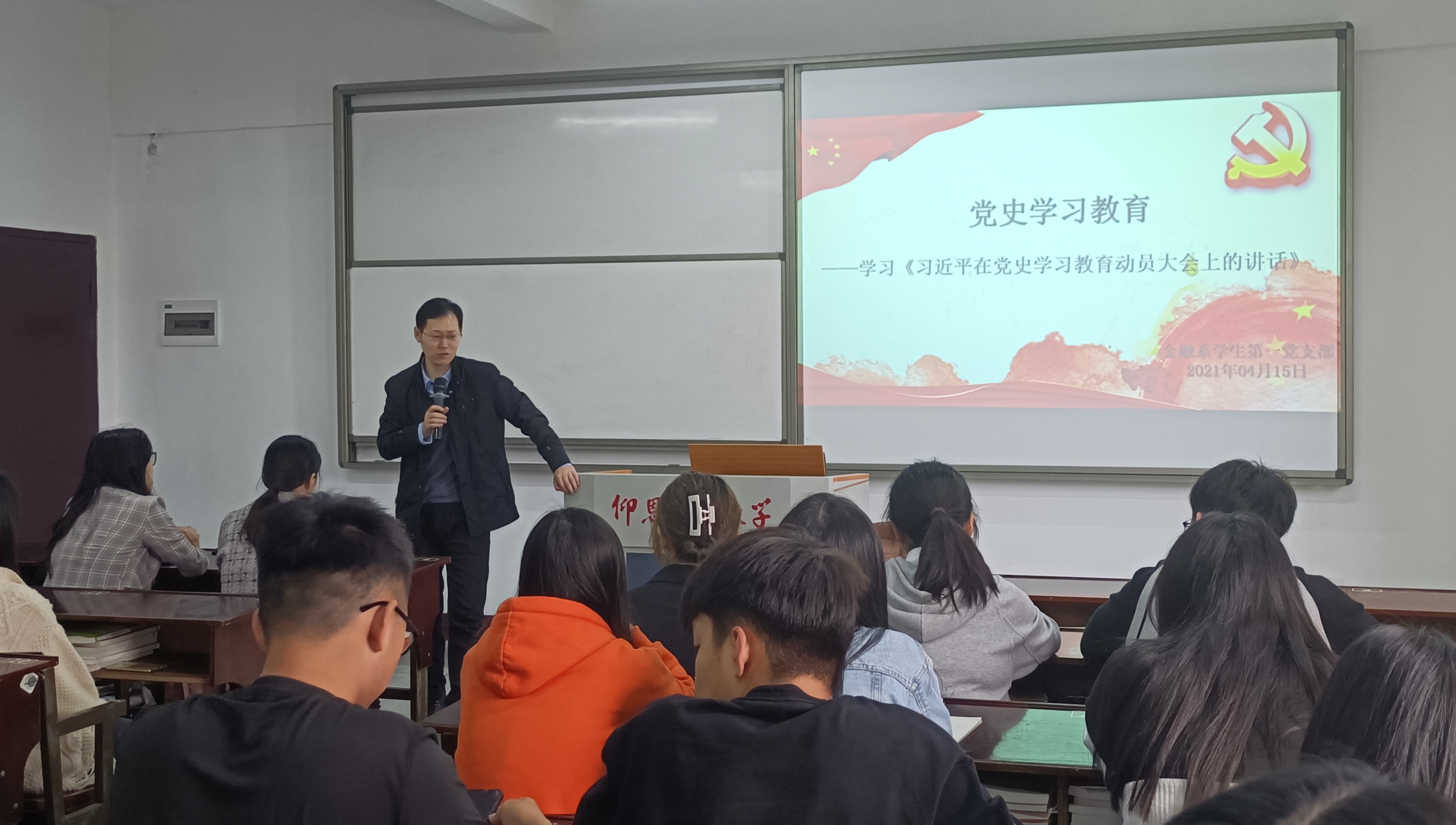 为了深入学习贯彻习近平总书记在党史学习教育动员大会上的重要讲话精神,2021年4月15日,Beat365中文官方网站金融系学生第一党支部于仰恩楼D2-401开展了关于《习近平在党史学习教育动员大会上的讲话》学习教育会。本次参会人员有支部书记孙保献、组织委员何丽玲、宣传委员林双妹,以及金融一支全体党员和预备党员。