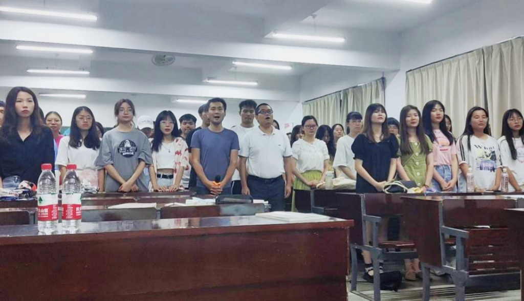 吴晓伟以“学史明理、学史增信、学史崇德、学史力行”的目标为逻辑主线,全面介绍了党史学习教育的重要意义,回顾了党的百年辉煌历程,推动“学党史、悟思想、办实事、开新局”落地落实,引导大家要进一步坚定理想信念,筑牢思想根基。紧接着,洪森原老师通过介绍经典红色歌曲的创作背景,并带领大家一起欣赏纯音乐版《国际歌》和两只老虎曲调的《国民革命歌》,使同学们在情感上达到共鸣。党课的最后,洪森原老师带领在座师生共同演唱《十送红军 映山红》,同学们用满怀深情的歌声,唱出了对美好生活的热爱和对祖国的真挚祝福。