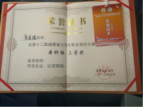 专业学生获福建省大学生职业生涯规划大赛本科组“三等奖”