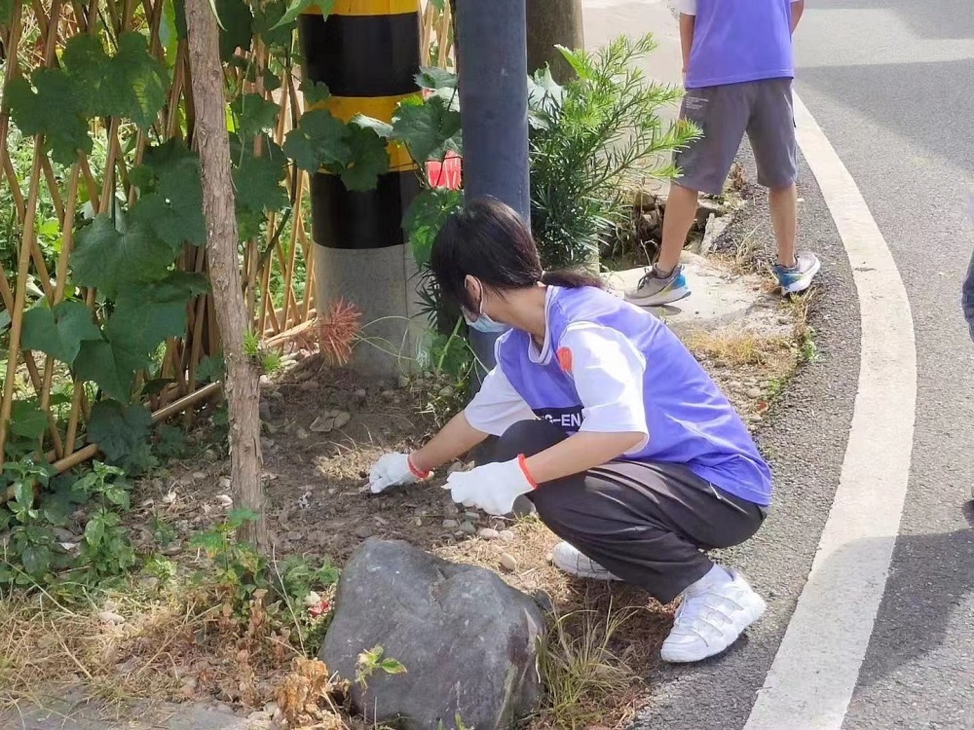 图1实践队队员在五龙村路边清理白色垃圾