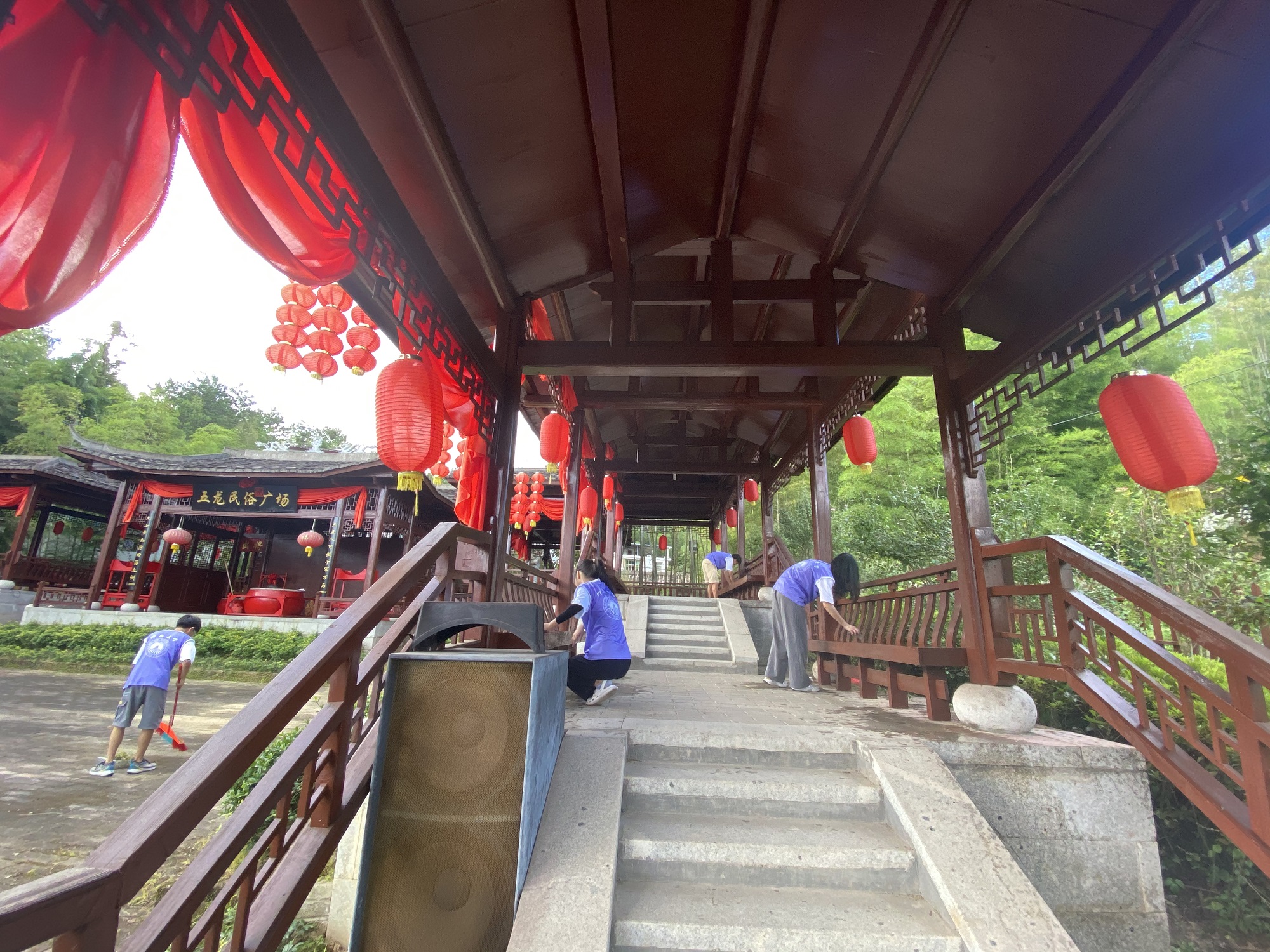 图2实践队队员在五龙村民俗广场进行清理打扫