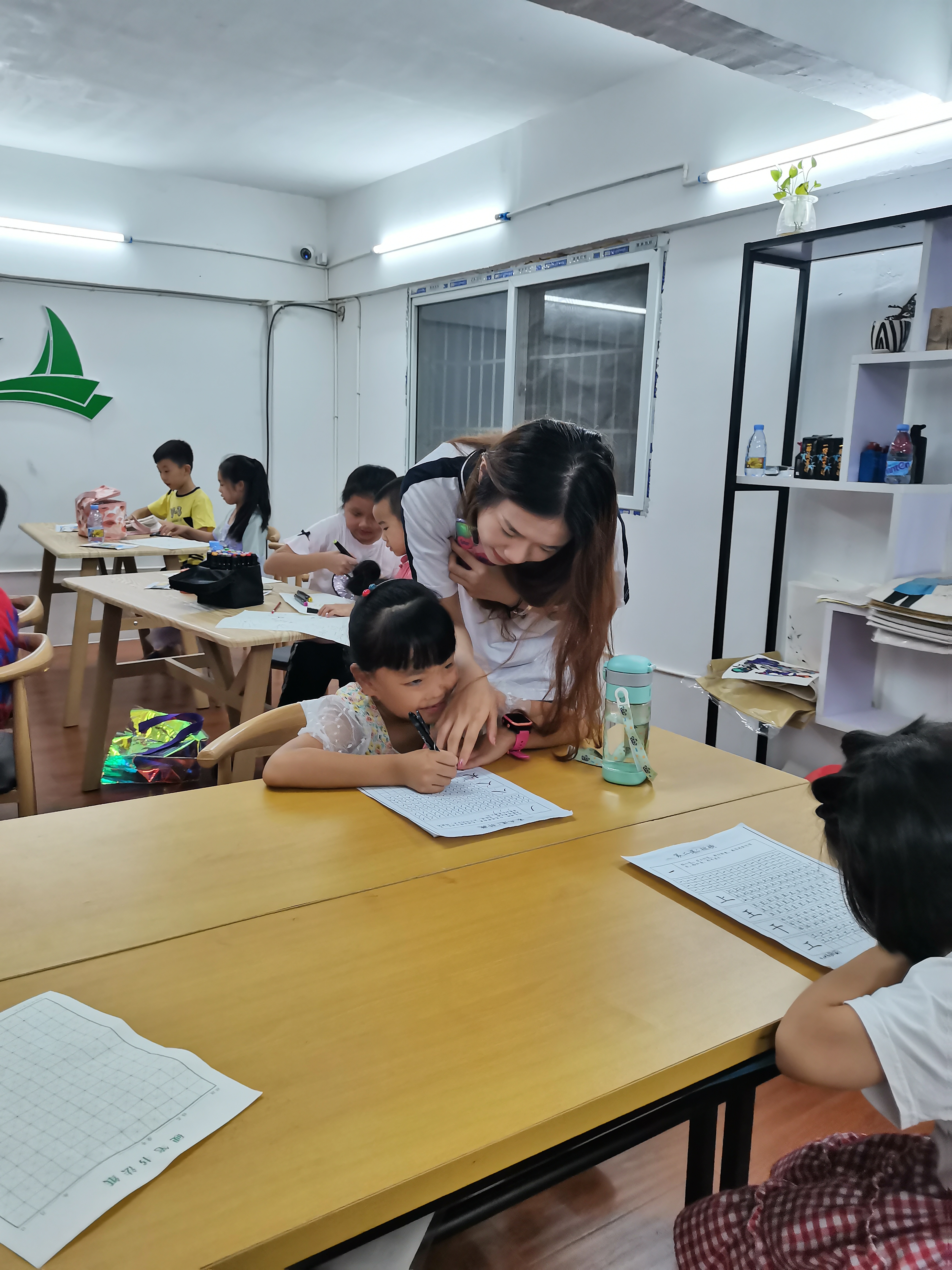 图1实践队员教小朋友书法和画画