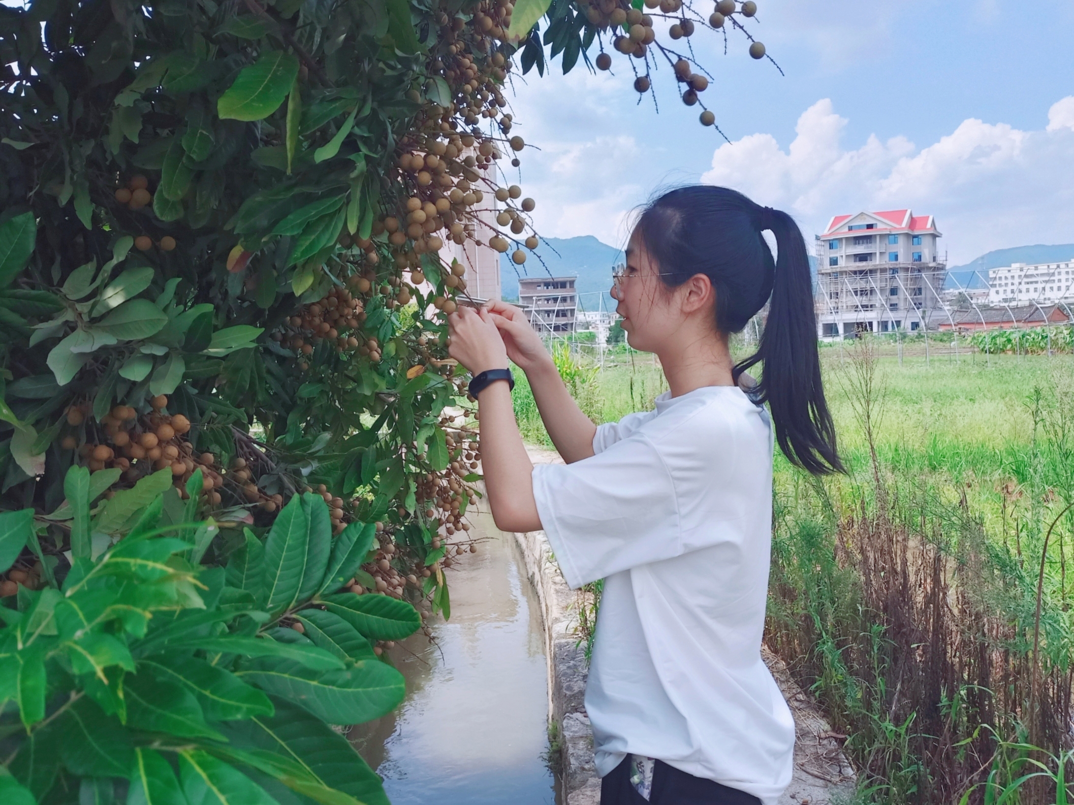图2实践队员在前溪村的果园采摘龙眼