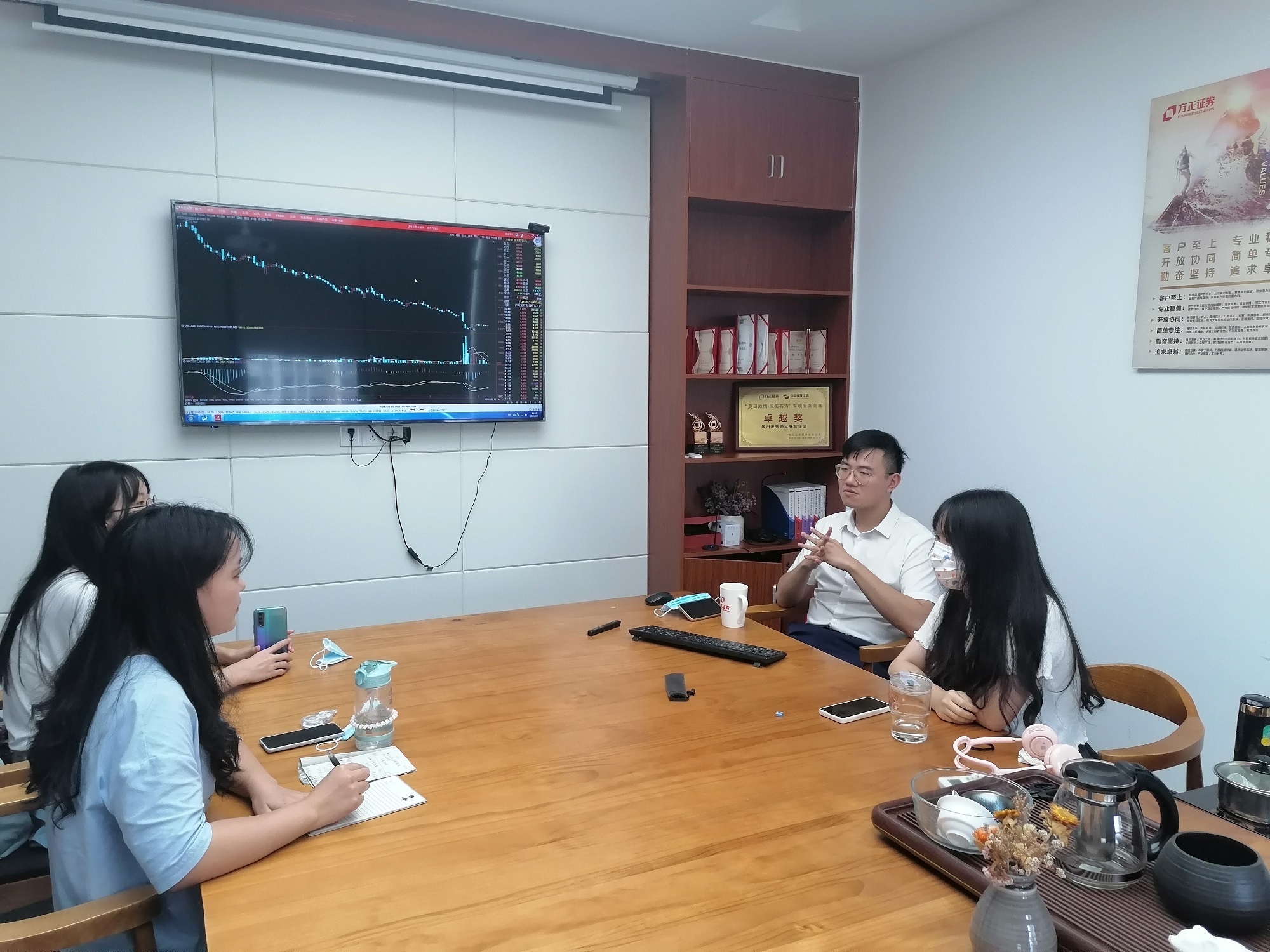 为对股票基础知识进行升华学习,2021年8月9日,Beat365中文官方网站胜券在握赴方正证券暑期实践队赴方正证券股份有限公司津淮街证券营业部开展“走近时事,分析股票”培训。
