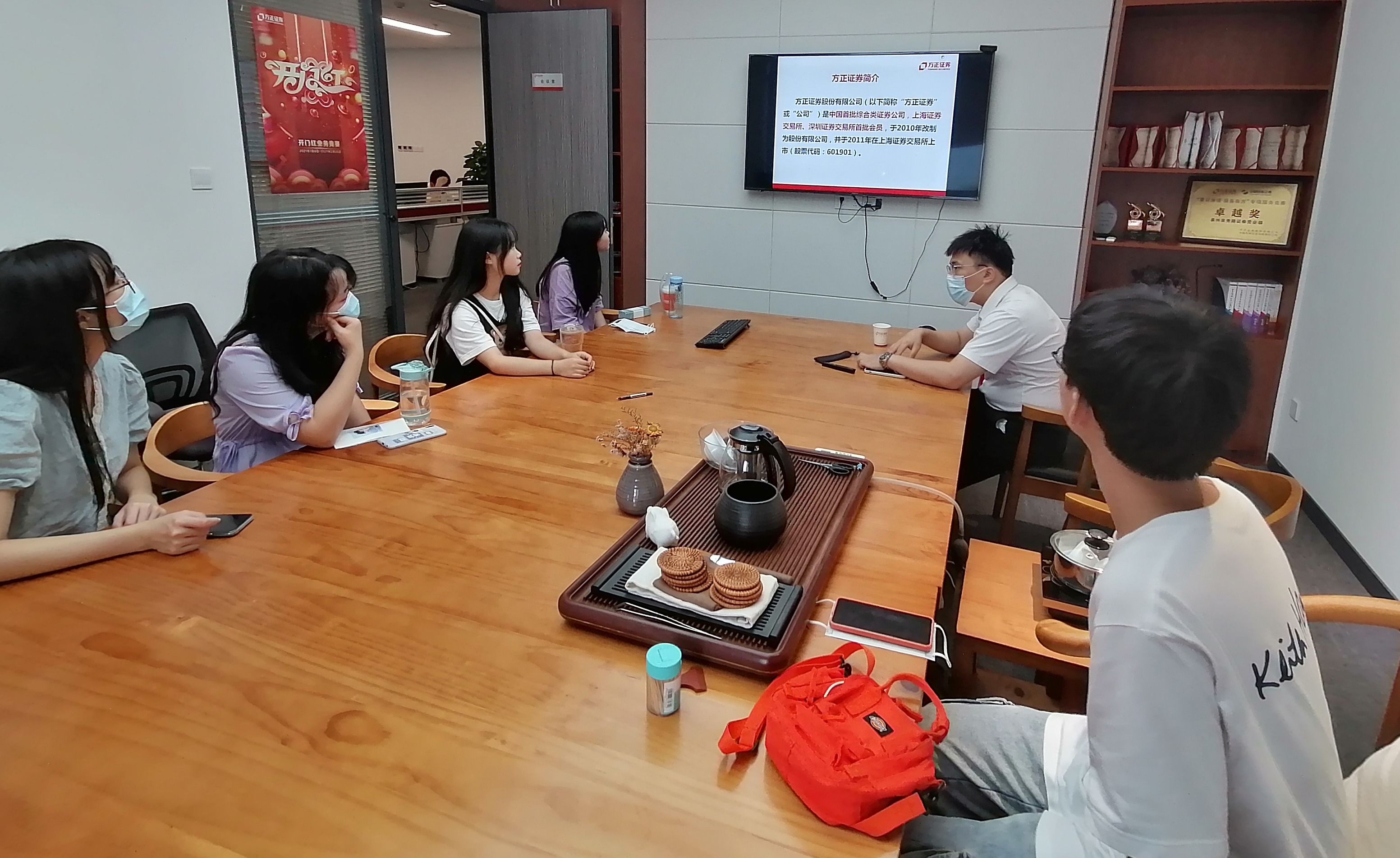 2021年8月11日Beat365中文官方网站胜券在握赴方正证券暑期实践队赴方正证券股份有限公司津淮街证券营业部学习了解方正证券的主营业务,继续分析股票细节并对打新股打新债进行延伸学习。