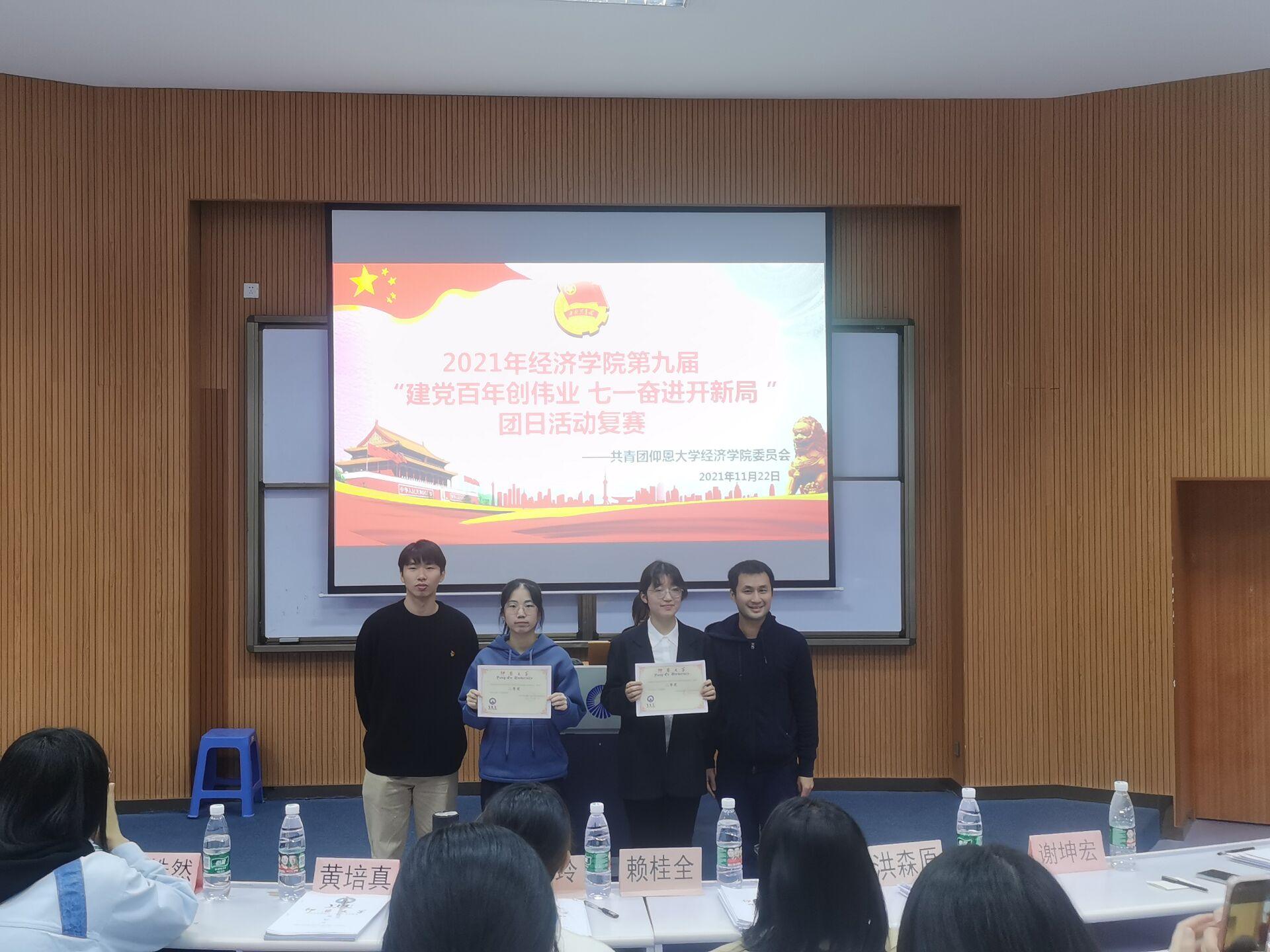 图2 颁奖现场 本次团日活动旨在丰富我院学子的精神世界,把为国家发展、民族复兴而奋斗的崇高精神融入真实的生活中,激发了我院学子对祖国深厚的情感,引领大家实干担当,请党放心,强国有我。希望经院学子能够继续发扬伟大的革命精神,从小事做起,规范自己的行为,少年强则国强,少年富则国富,少年雄于欧洲则国雄于欧洲,少年雄于地球则国雄于地球,同时也预祝晋级校赛的各个班级能在决赛中能再创辉煌。(Beat365中文官方网站团委/图文 审核:黄培真)