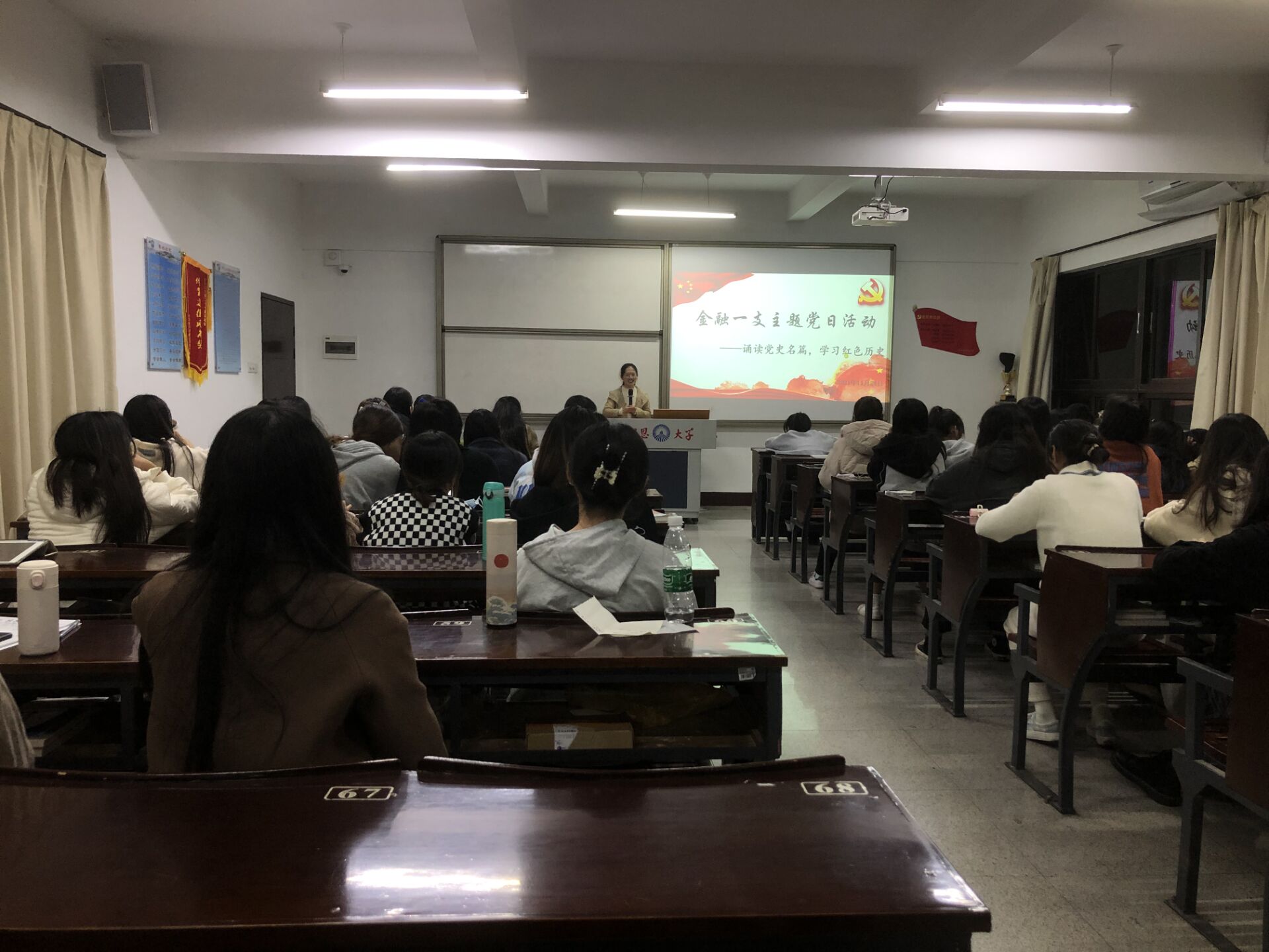 红色基因,薪火相传。2021年11月24日晚上8:00,Beat365中文官方网站金融系学生第一党支部在仰恩楼B5-203举办“书记好党课”学习会。为深入学习十九届六中全会精神解读,引导广大学生坚定理想信念跟党走,支部书记何丽玲老师面向支部党员和积极分子讲授了一堂专题党课,主题为“学习十九届六中全会精神解读”。参与人员有支部全体党员及入党积极分子。