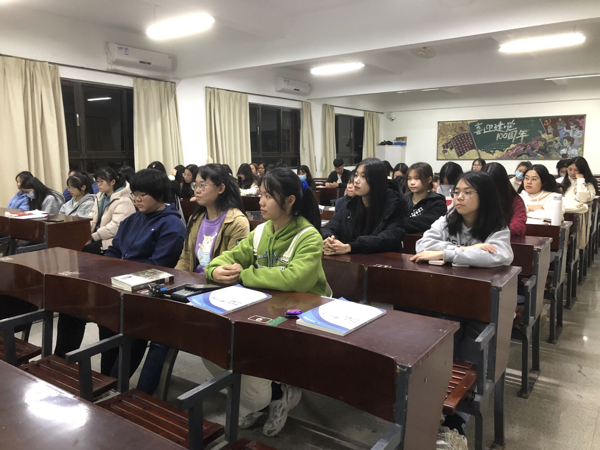 图1 何丽玲老师给同学们上党课 党课开始,何丽玲老师用自己扎实的理论功底,结合生动的事例,对党的十九届六中全会精神作出讲解,最后勉励同学们要学好党史这门“必修课”,坚持系统学、深入思考学、联系实际学,永葆党员的先进性和纯洁性。