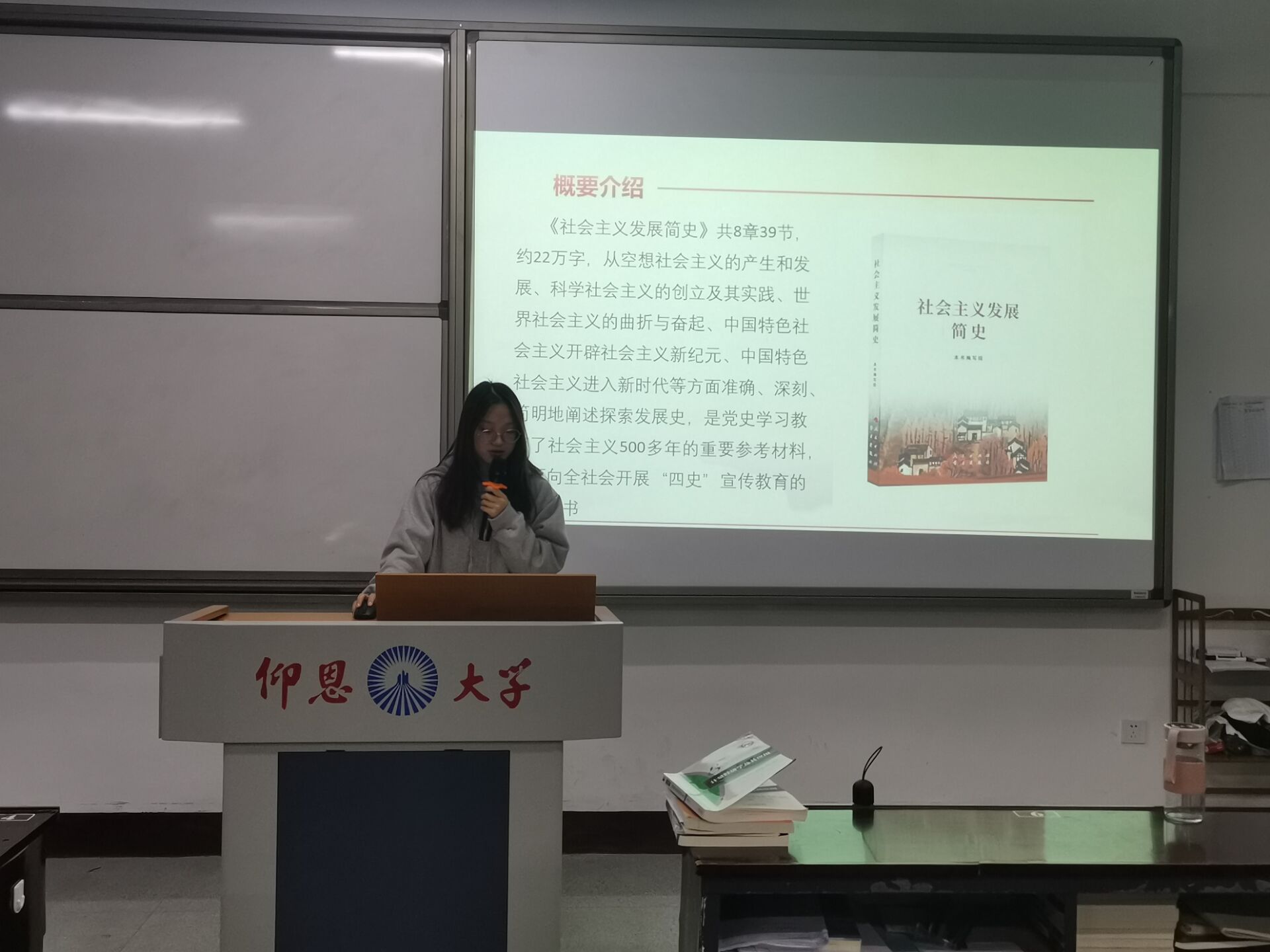 会议尾声,支部副书记姚姝然老师对本次学习会进行了总结发言,姚姝然老师表示学习社会主义发展简史对我们认识中国社会主义道路具有十分重要的作用,每一位党员同志都应该学习了解社会主义发展简史,努力为中国特色社会主义发展和祖国的建设奉献一份力。
