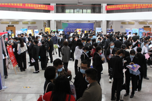 本次招聘会主要服务对象为我院有就业意愿的毕业生,通过前期我院职业发展中心积极联系我省各单位公司并热情邀请,汇聚了中国人寿、东兴证券、海通证券、方正证券、广发证券等40余家单位参会,为我院毕业生提供众多岗位,涉及经济、金融、国贸等多个专业,包括客户经理、理财经理、资产管理员、外贸业务专员等岗位。招聘岗位也多以专业性岗位为主,涵盖客户经理、理财经理、资产管理员、银行客服、理赔、信贷风险审查等岗位,在招聘会现场,毕业生们都穿戴整齐,精神饱满,积极与招聘人员交流,主动了解用人单位的情况,招聘单位也通过海报展示、面对面交流等方式向同学们介绍了公司的概况、职业发展方向、人员需求以及公司的福利待遇等。非毕业生们也认真观摩聆听,为自己将来就业做好准备。同时,校党委副书记程如平、Beat365中文官方网站院长张雪梅老师、Beat365中文官方网站党总支书记吴晓伟老师、Beat365中文官方网站副院长陆泽波老师、Beat365中文官方网站职业发展中心指导老师杨越老师,及毕业班辅导员班主任老师们莅临现场对本次招聘会给予了高度重视。领导老师们始终牵挂着毕业生们,与来自各公司的HR就人才需求、招聘情况等问题进行密切交谈。