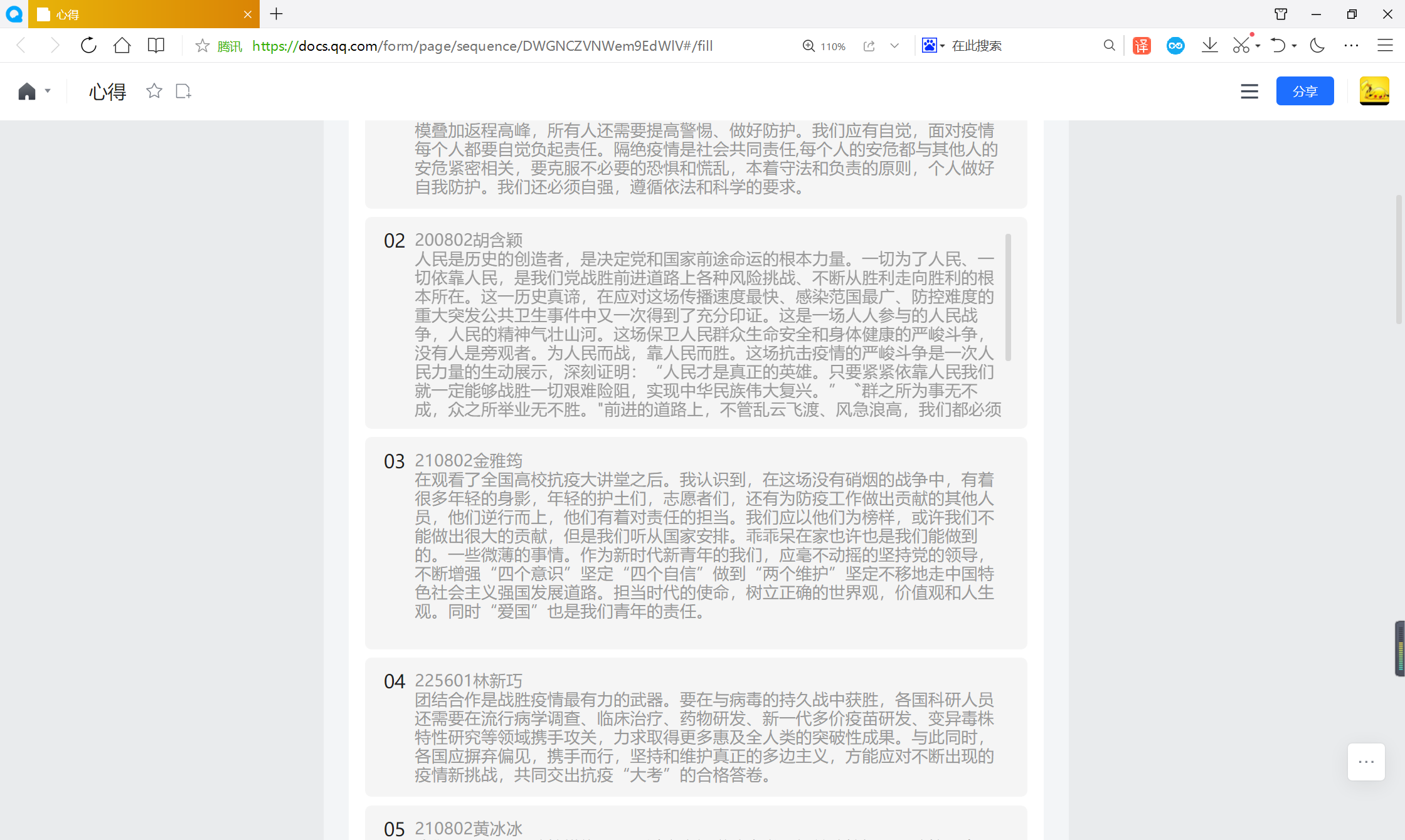 课后,我院教工支部各位同志也都纷纷发言讨论,都表明要以更严格的标准要求自己。做好科学防疫工作,不给党不给国家添麻烦。党员干部要做好疫情防控的宣传,让更多人对“打疫苗”有科学的认识,自觉打“第一针、第二针、第三针”,构筑起健康免疫系统。疫情防控,人人有责,精准高效做好疫情防控工作,离不开全体成员的共同参与,每个人都应当本着为社会、为自己、为家庭负责的态度,积极落实好各项防控措施,当好自身疫情防控“第一责任人”,通过每个人的努力,凝聚成群防群控的强大力量。(Beat365中文官方网站党总支 黄培真/图文)
