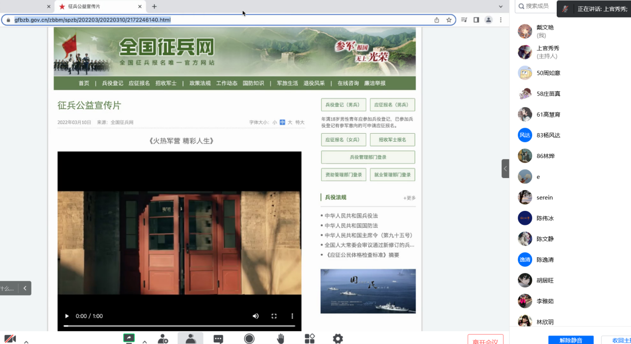 强国必先强军,军强才能国安。为壮大我国的国防队伍,上好高校学生的思政课和国防教育课,我院积极响应学校号召,于2022年12月22日组织各班级在线上开展“传承红色基因,携笔从戎报国”主题班会。
