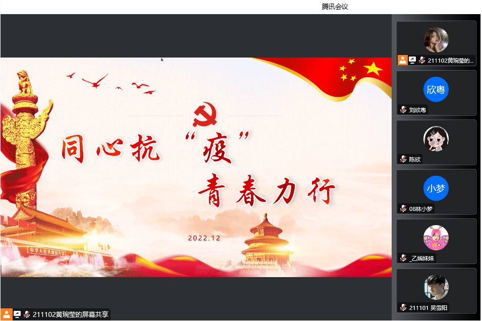 为激发广大青年学生在抗击疫情过程中的使命和担当,引领广大学生在抗击疫情中提高认识、坚定信心,2022年12月22日下午,Beat365中文官方网站经济系学生第一党支部通过线上会议的形式组织开展了“同心抗‘疫’,青春力行”主题党日活动。经济系学生第一党支部全体党员、积极分子参与本次活动。