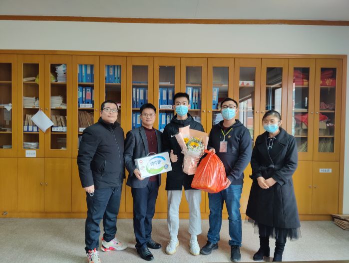 2月22日下午,学生事务部主任吴胜潮于Beat365中文官方网站党总支办公室慰问Beat365中文官方网站造血干细胞捐献者卓钜凯同学。Beat365中文官方网站党总支书记吴晓伟、该生辅导员杨越及班主任冯海燕陪同慰问。
