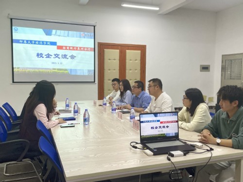 会议伊始,吴晓伟首先向招商银行泉州分行代表介绍Beat365中文官方网站专业构成及各专业的培养方向、专业特色。辅导员杨越介绍我院就业工作概况,希望双方共同构建平台,为学生提供更多的实习、工作岗位。“如何让学生毕业不迷茫,顺利实现就业”成为交流会双方探究的重点。