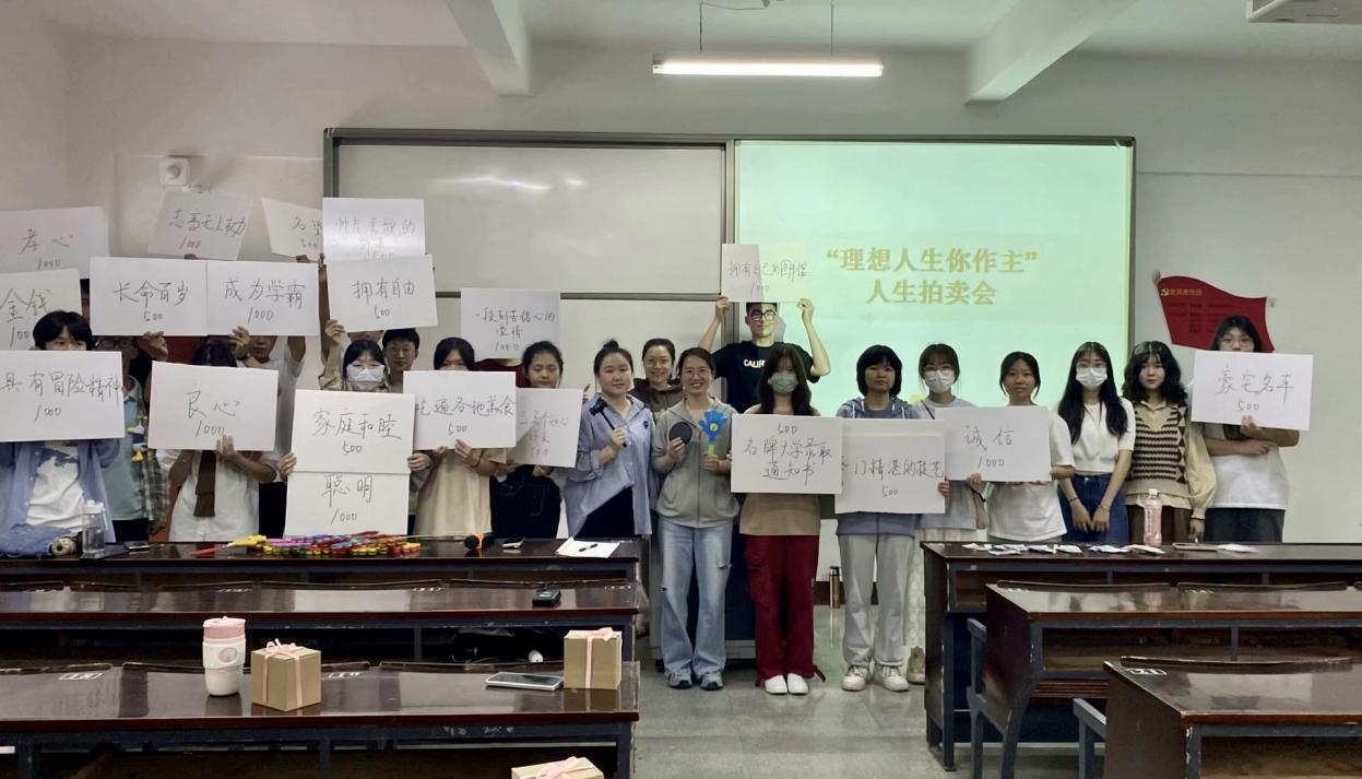 拍卖会开始,主持人先讲解了拍卖规则和拍卖流程,每位参与同学通过竞价的方式拍卖人生的各类商品,包括但“聪明、金钱、家庭和睦、良心、孝心、至高无上的权利”等22个拍品。在活动期间,同学们积极参与活动,依次对展示的拍卖品进行竞拍,以手中有限的数额,诠释不同价值在心中的地位。拍卖结束后,参与活动的同学分享了自己竞拍到的东西以及自己看重它们的原因,讨论了是否会为金钱等付出一切等深刻问题,共同思索着自己内心深处对这些宝贵之物的真实态度。