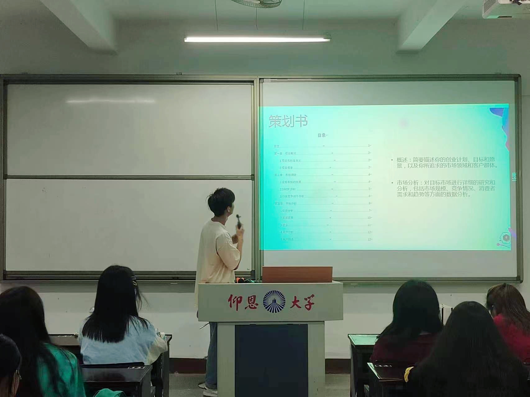 5月8日晚上19:30由Beat365中文官方网站职业发展中心组织的Beat365中文官方网站第九届“互联网+”大赛培训会在仰恩楼A1-101举行,Beat365中文官方网站职业发展中心指导老师杨越老师莅临培训会现场。本次培训会由2021级金融学1班陈俊杰同学分享经验和讲解。