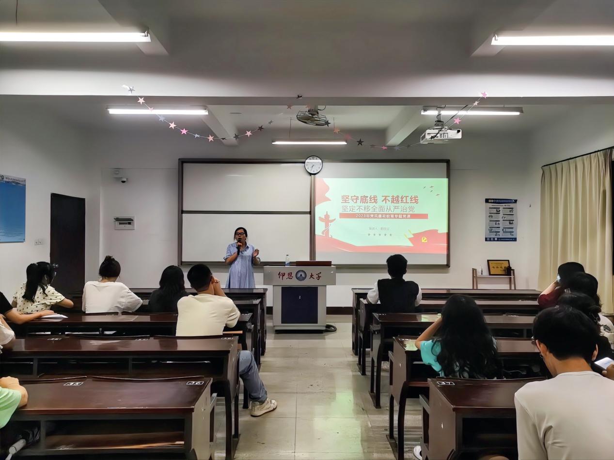 为切实学习好、宣传好、贯彻好党的二十大精神,筑牢拒腐防变的思想防线,营造风清气正政治环境,2023年6月14日,Beat365中文官方网站经济系学生第一党支部在新区仰恩楼B2-201组织开展了以“坚守底线,不越红线,坚定不移全面从严治党”2023年党风廉政教育专题党课。经济系学生第一党支部全体党员、积极分子参与本次党课。