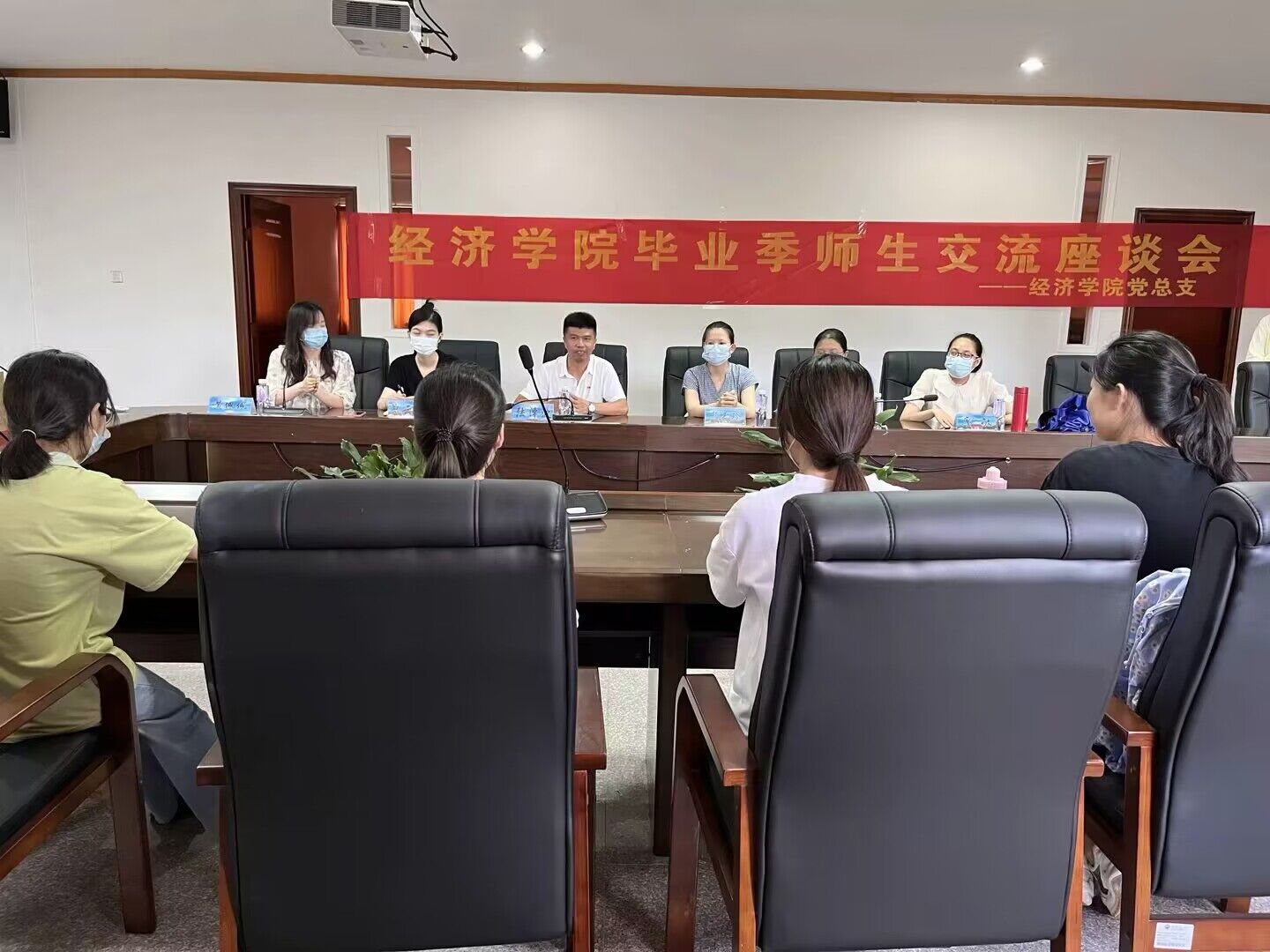 6月29日下午17点,Beat365中文官方网站党总支联合教工支部开展毕业季师生交流座谈会,本次座谈会参加人员有教工支部教师党员代表、毕业班班委代表。