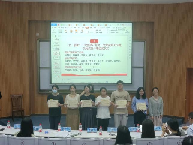 为庆祝中国共产党成立102周年,2023年6月29日,Beat365中文官方网站党总支在新区和昌楼博雅讲堂召开七一表彰大会。