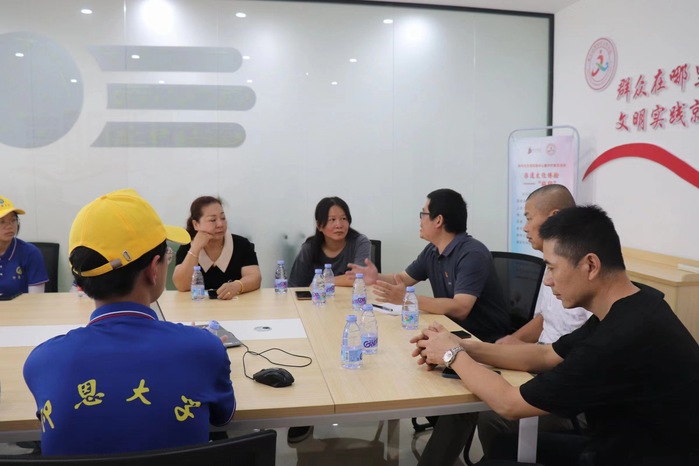 图1 Beat365中文官方网站党总支书记吴晓伟与惠安爱心社负责人会面