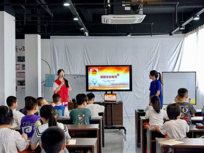 实践队提前抵达立塘社区,与立塘社区服务志愿者讨论活动开展的流程和内容。随后,志愿者带领实践队员前往永泰县团委暑托班,共同开展爱国党史教育活动,给小朋友们讲述中国共产党的发展历史和背景故事,展示革命先辈的英雄事迹,传播爱国主义思想。