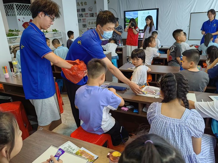 图2 实践队员给小朋友们分发零食