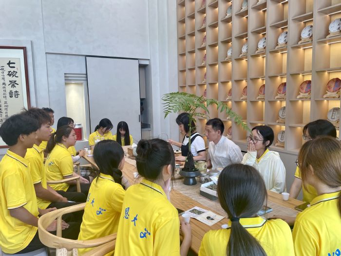 随后,实践队员同刘开云大师品茶,聆听非遗传承人讲白茶文化。品鉴完白茶,实践队同刘开云大师前往有机白茶茶园,听传承人介绍有机白茶培育过程及优势与劣势,让实践队员切身感受非遗文化传承的不易,更加坚定弘扬非物质文化遗产的决心。