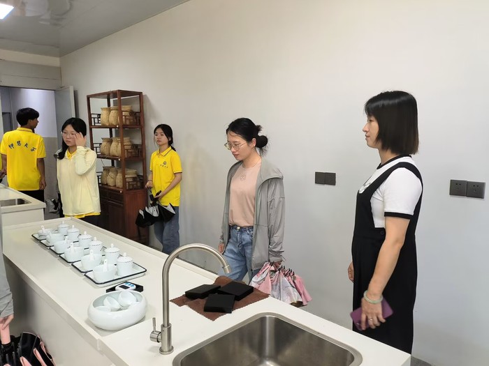 实践队赴茶叶基地参观展厅,深入了解公司的成立、“劝儒白茶”品牌的创立,参观各类白茶展品。劝,劝茶;儒,中国以“人道大伦”推衍“爱与敬”以人为本。白茶:一是指用白茶工艺制作出来的茶,二指茶树品种。