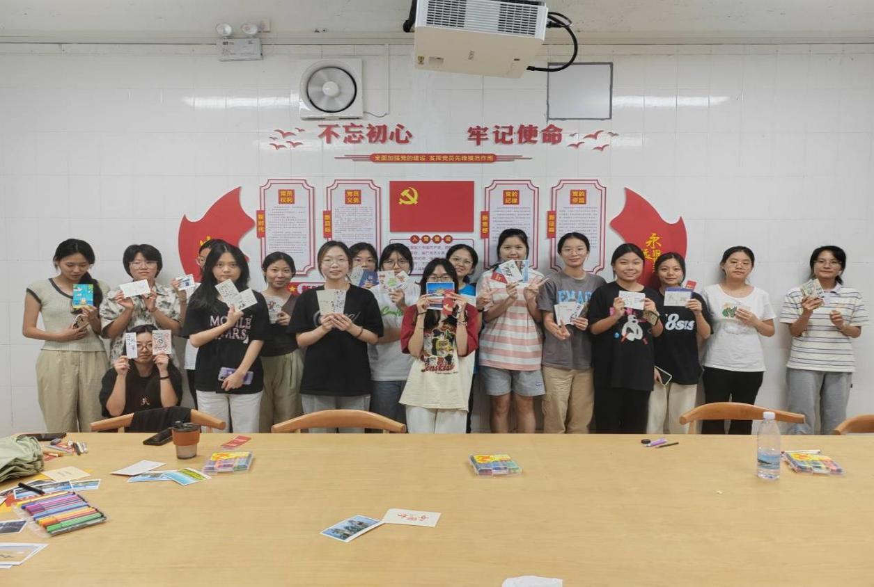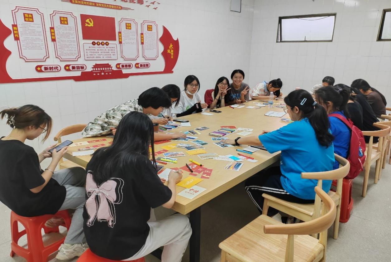 为了深入贯彻党的二十大精神,弘扬爱国主义精神,培养学生爱国主义情怀,2023年10月26日16:00,Beat365中文官方网站金融系学生第一党支部在致远书院党员活动室组织开展“青春心向党,以手绘祖国”绘制明信片主题党日活动。支部书记何丽玲老师和金融系各班积极分子参加了此次活动。