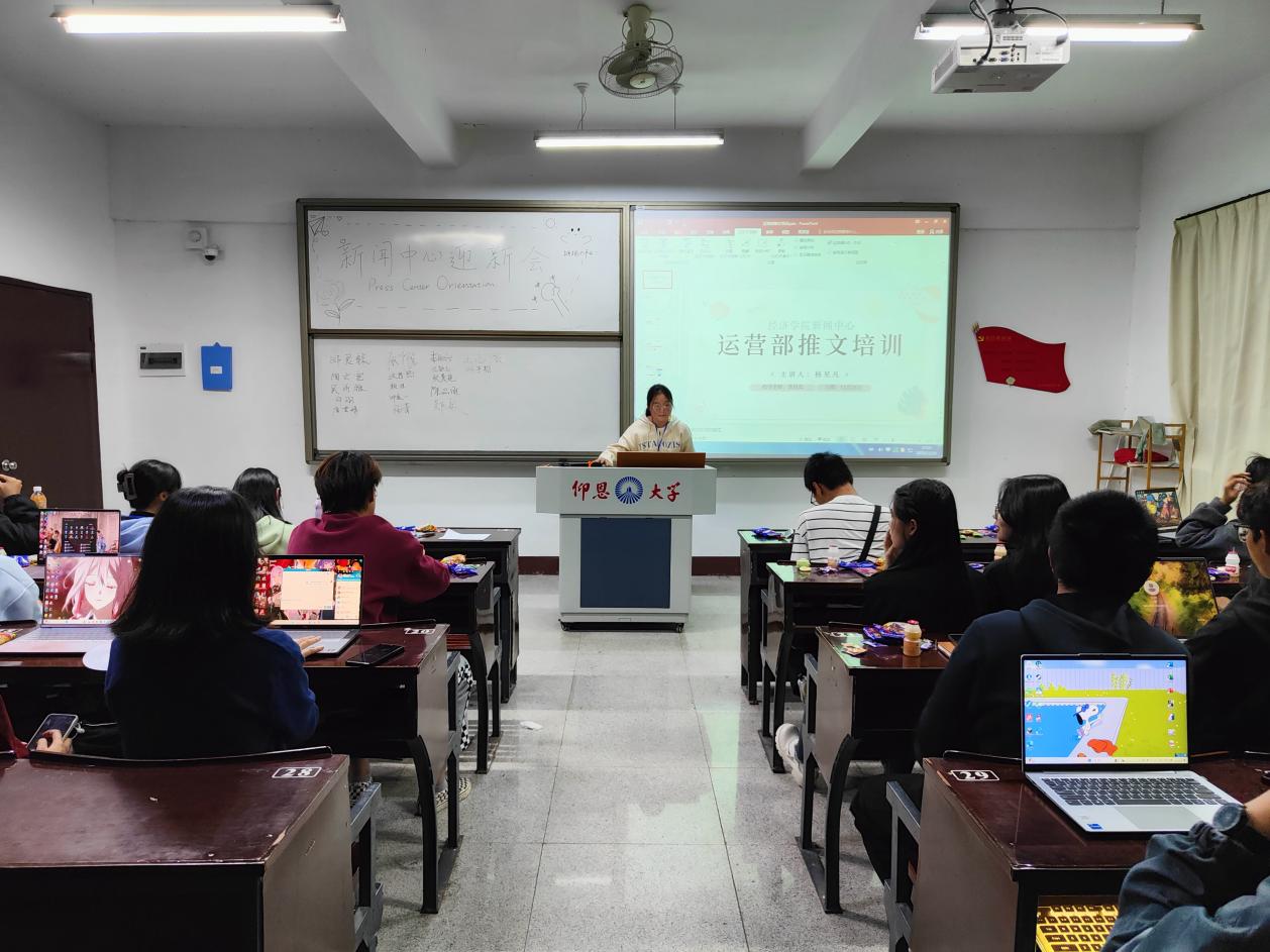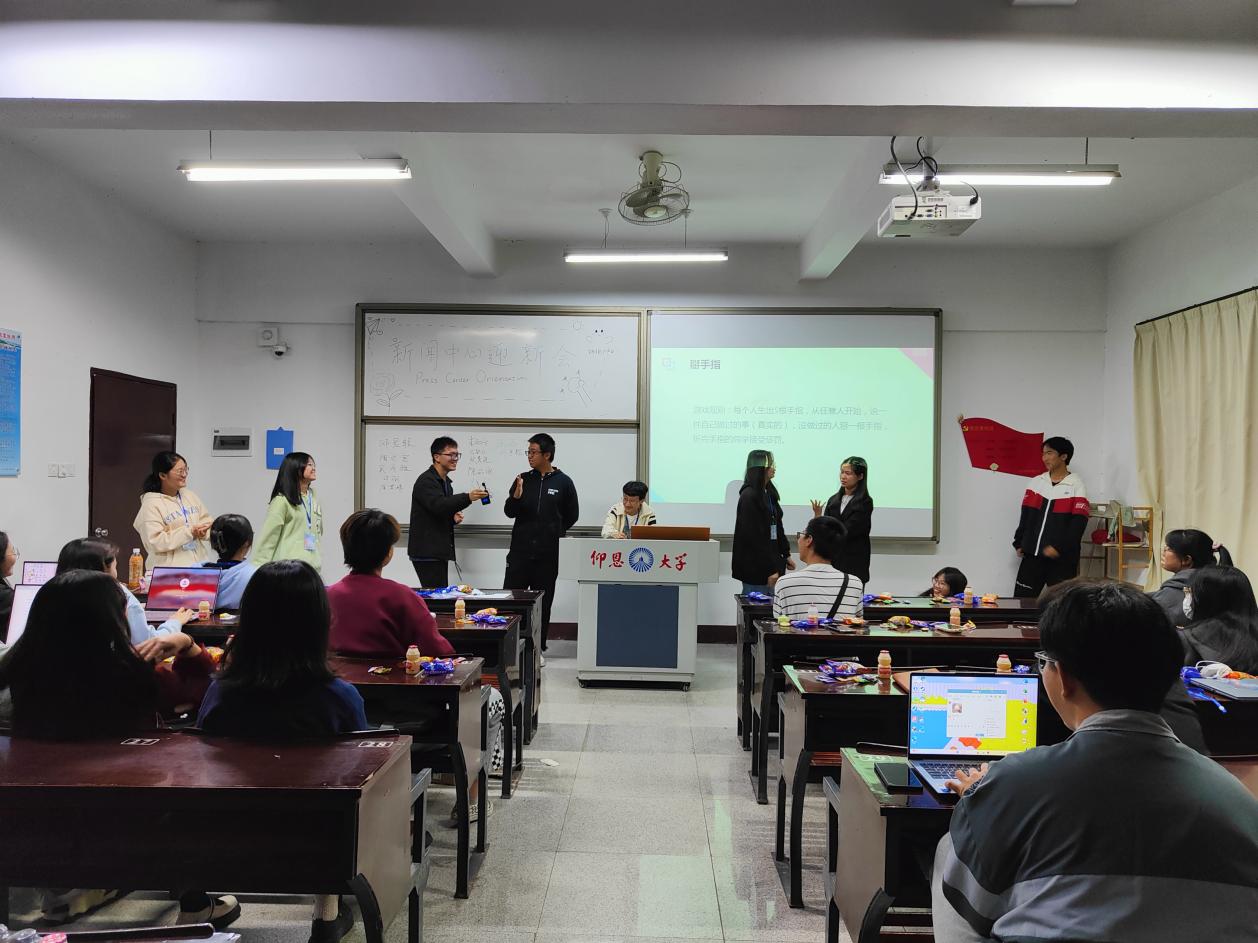 在迎新活动中,干部们首先向干事介绍了新闻中心的基本情况,让大家对新闻中心有了更深入的了解。接着各干部和干事都一一介绍了自己。随后各干部和干事一起进行了“击鼓传花”和“掰手指”等小游戏。在座的同学们都按捺不住自己想要参与游戏的心情,跃跃欲试。在培训活动中,采编部及运营部的部长分别向干事们介绍了两个部门所负责的重点工作。其中,运营部更是现场对各干事进行推文实操培训,希望能够让干事先熟悉工作流程,以便更有效率的完成工作。